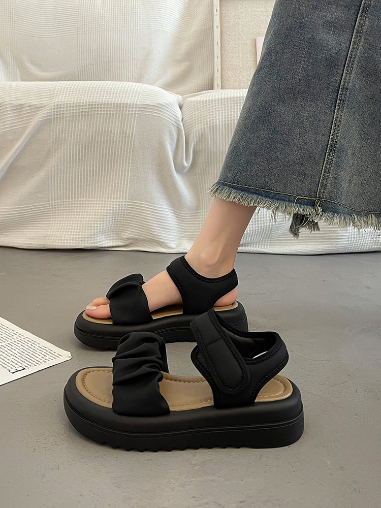 Летние сандалии на платформе, обувь, модная универсальная подходит с юбкой на плоской подошве, французский стиль