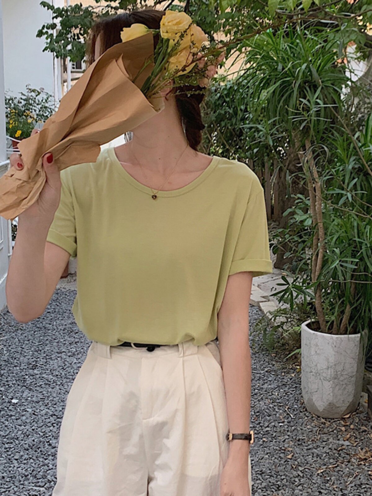 Шелковая тонкая базовая приятная телу футболка с коротким рукавом для отдыха, свободный крой