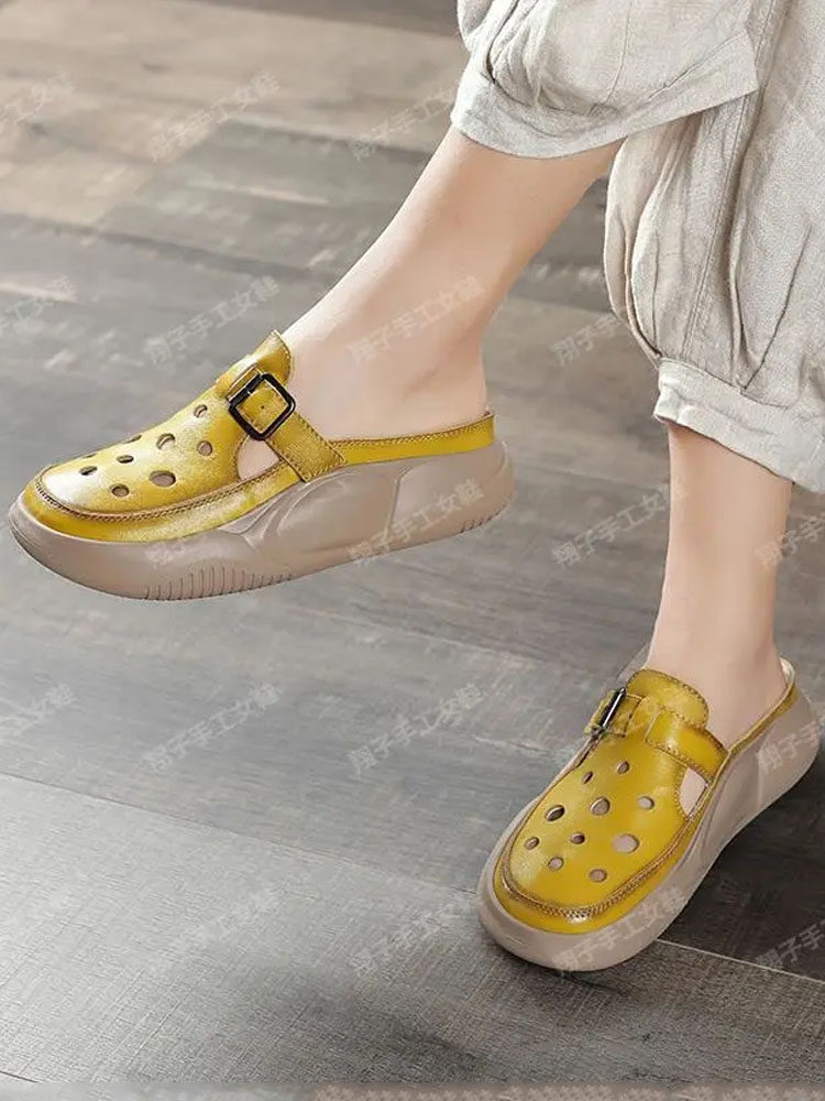 Босоножки на толстой подошве для верхней одежды, тапочки на танкетке, полудрагоны на платформе с носками, на толстом каблуке, босоножки на среднем каблуке, полые туфли с сеткой 2023.