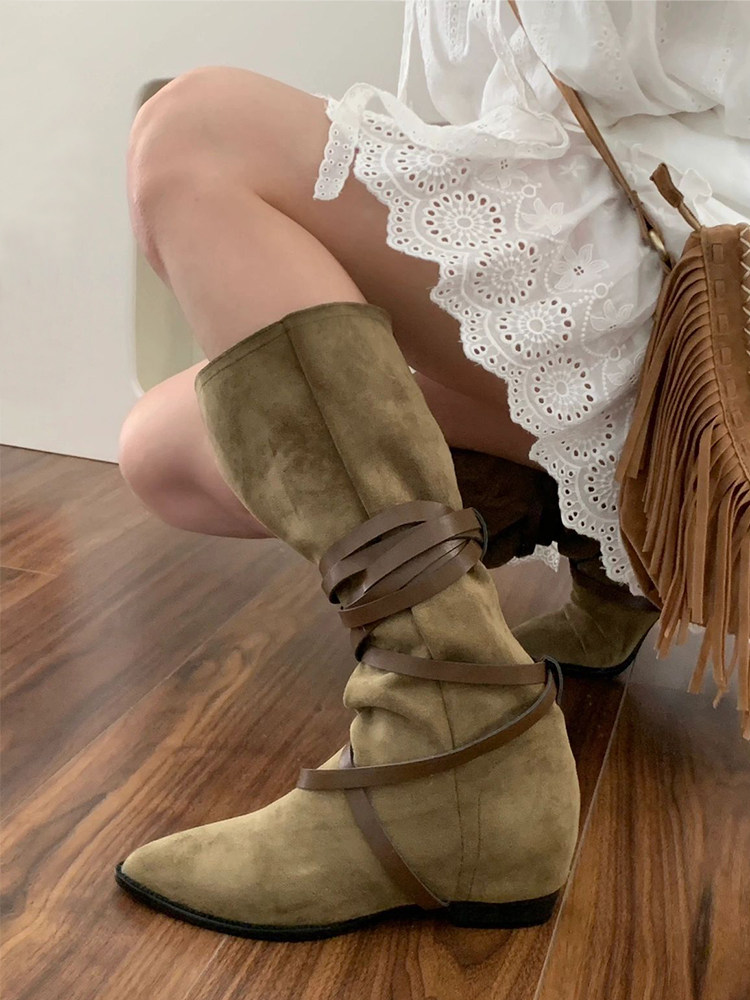 Джинсовые сапоги, ремень, ретро ботинки с заостренным носом, коллекция 2023