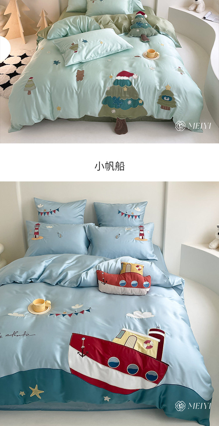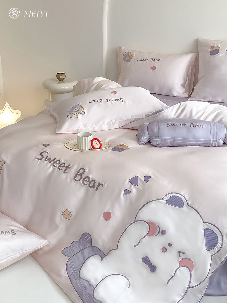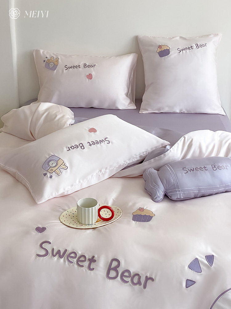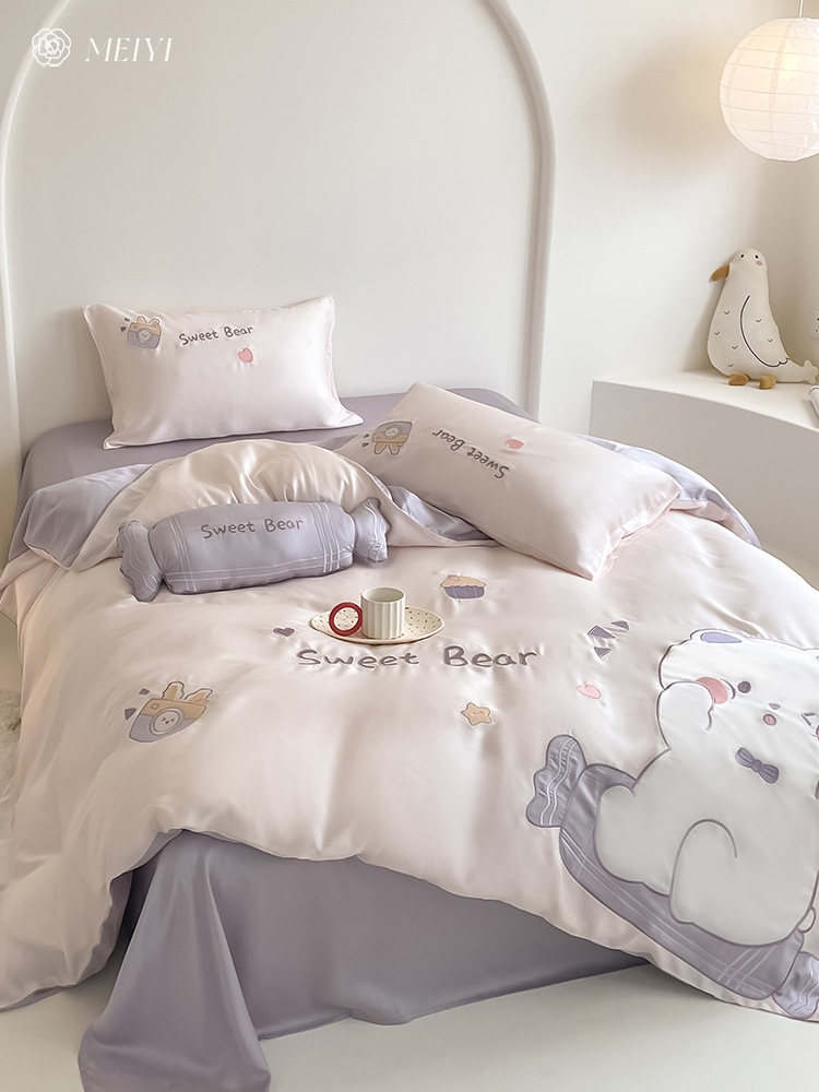 Летний шелковый комплект, кровать, простыня, милый пододеяльник, покрывало, 100 шт, 4 предмета