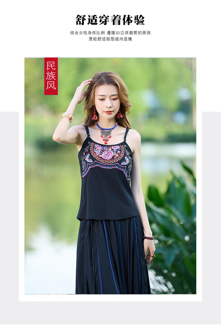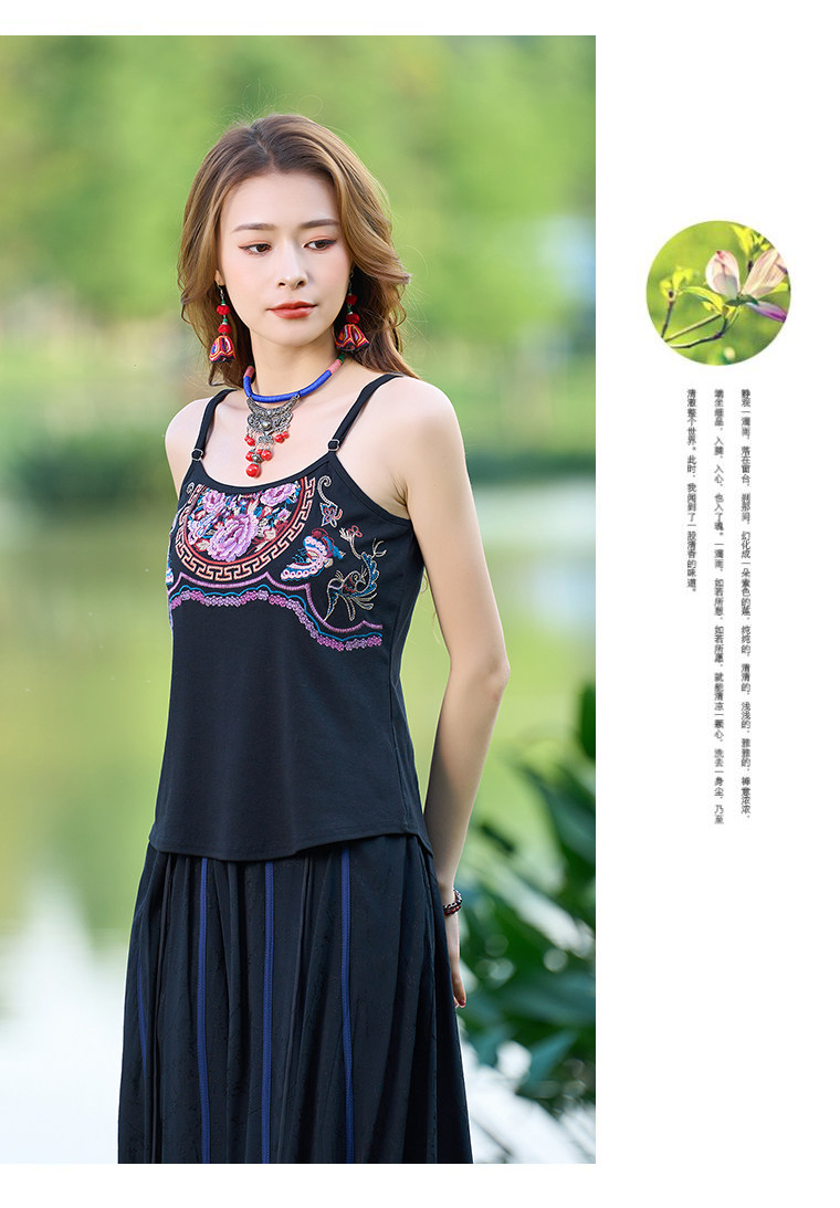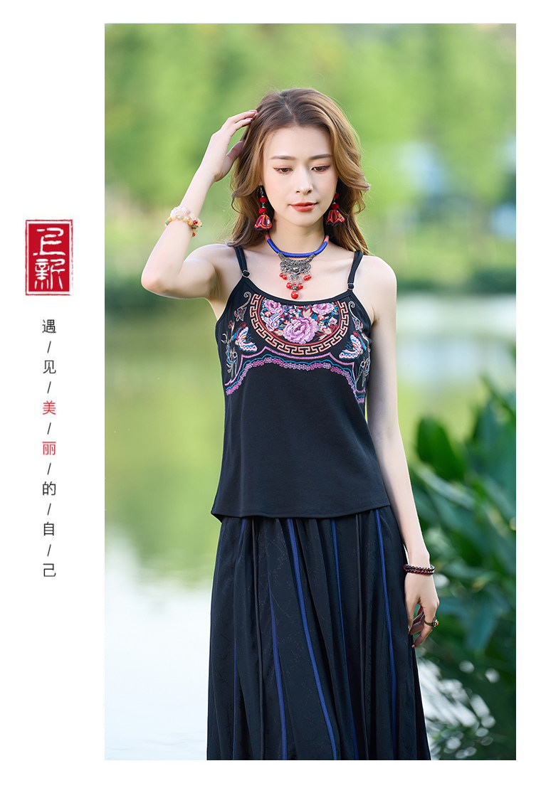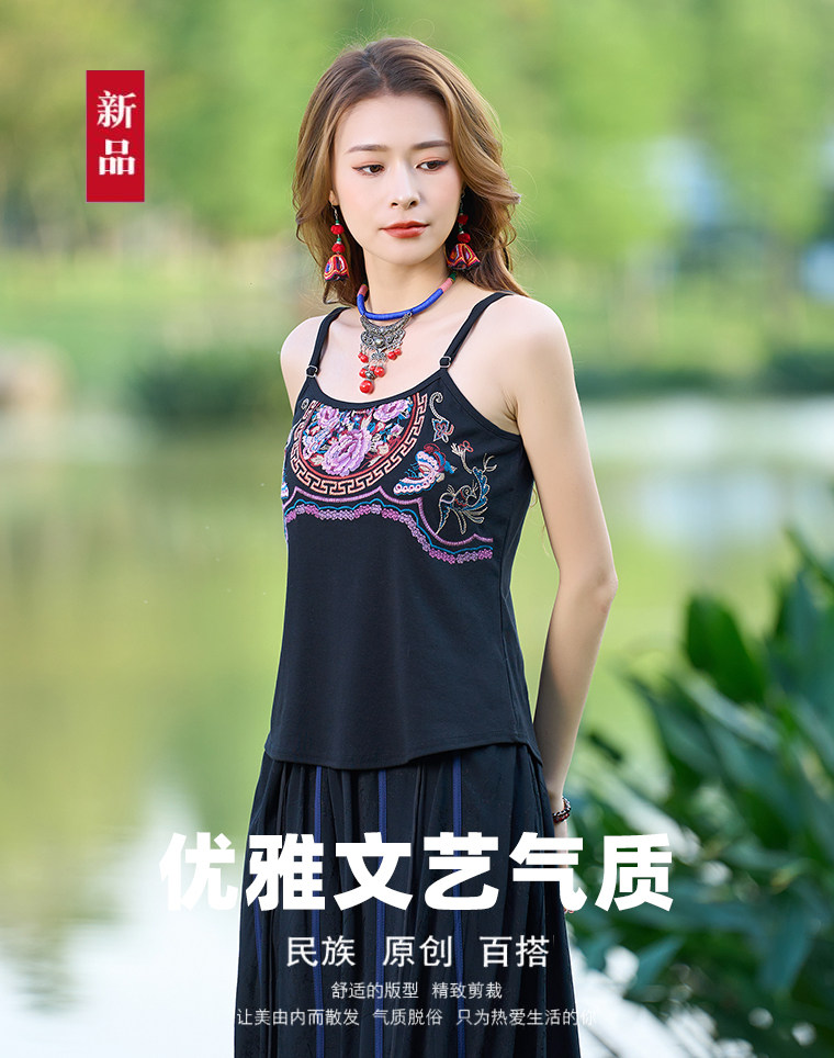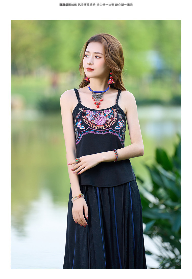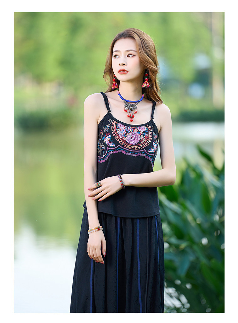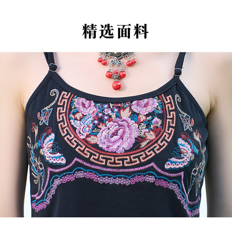Летний этнический ретро топ с чашечками, приталенная базовая майка, этнический стиль, с вышивкой