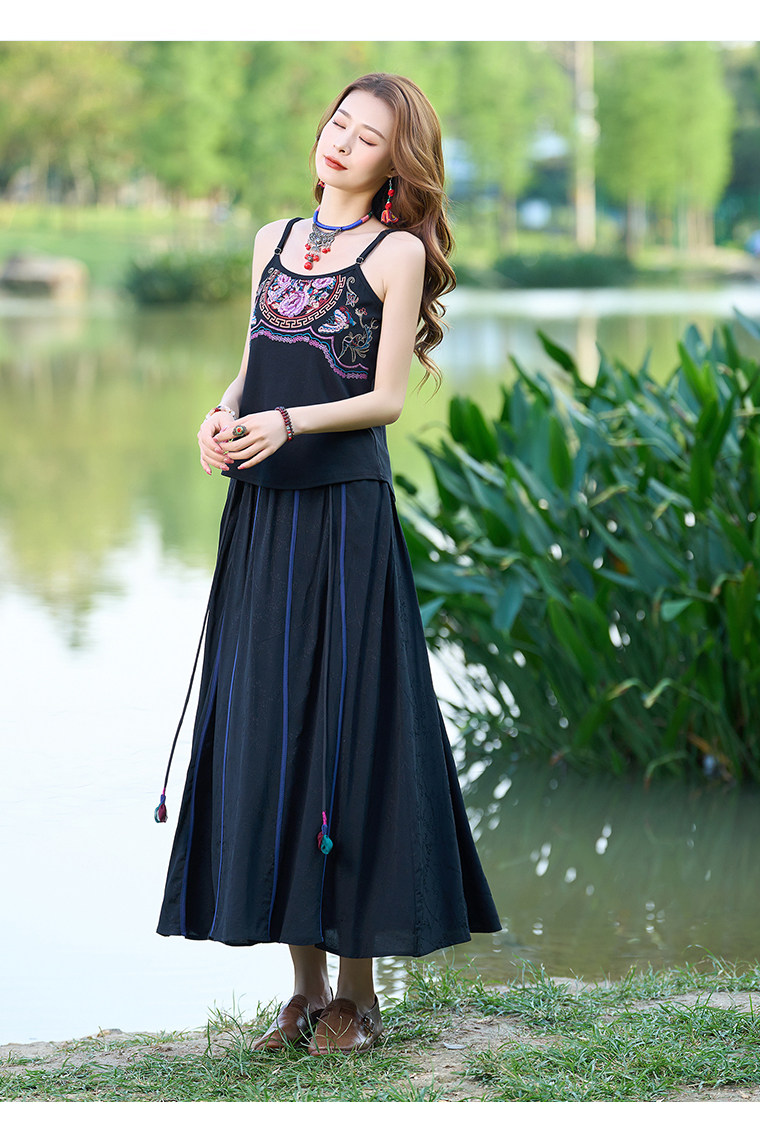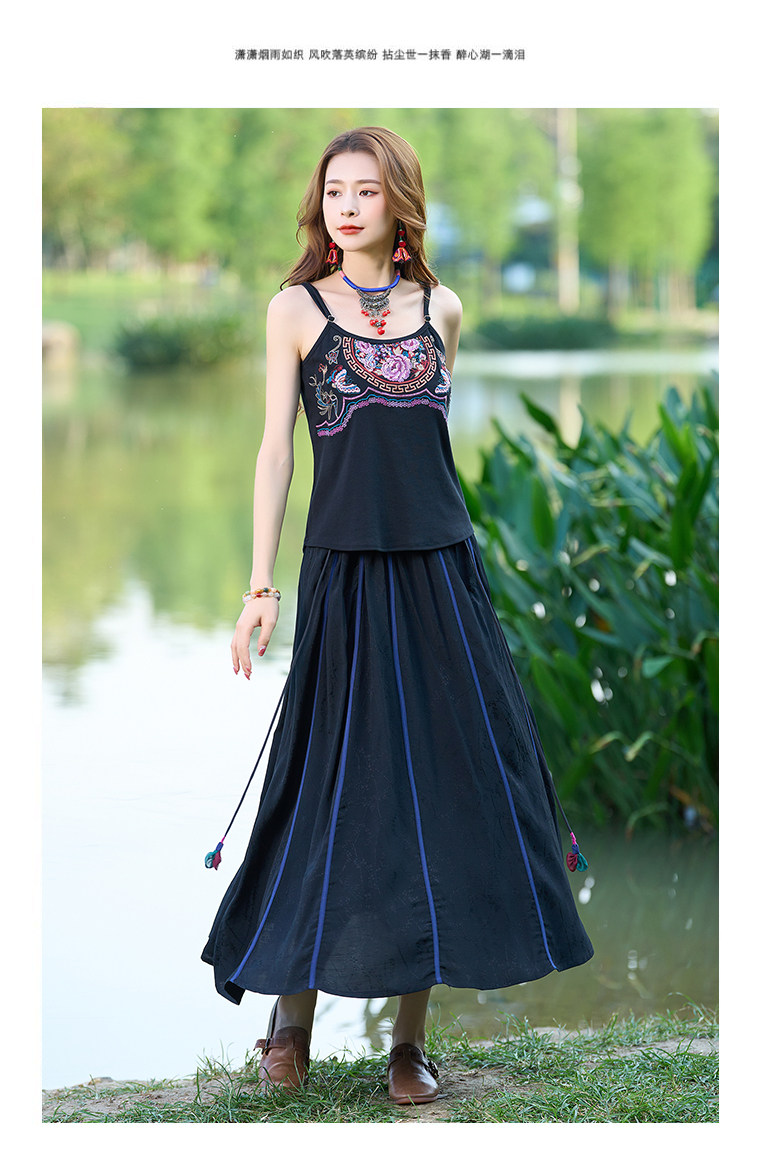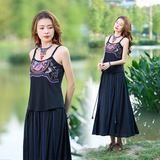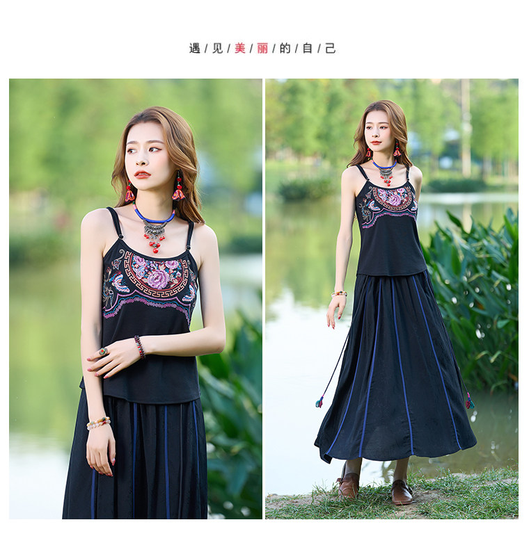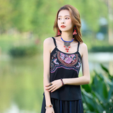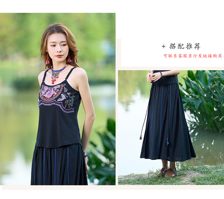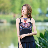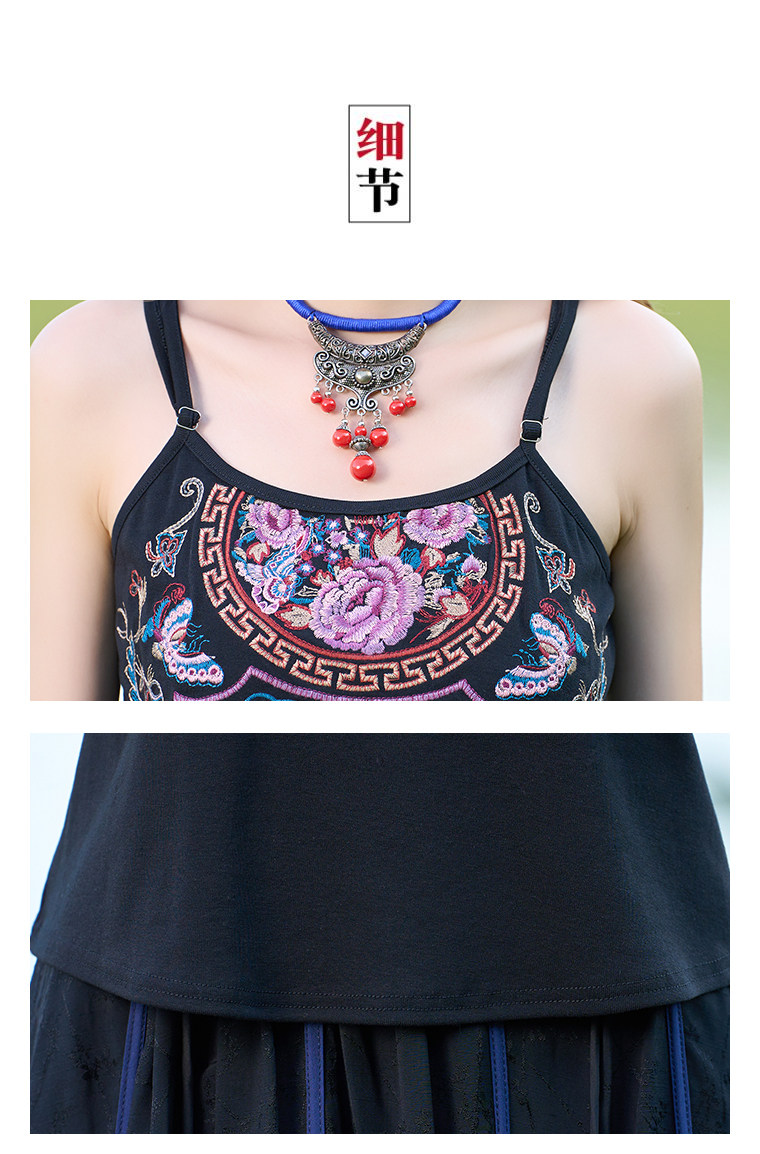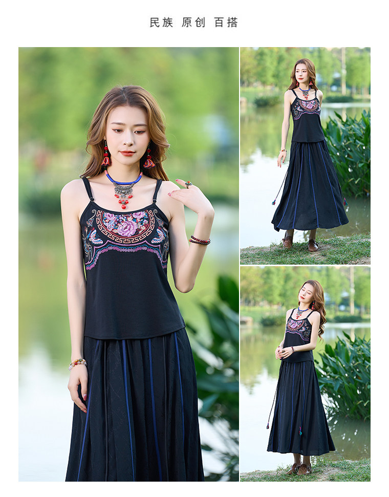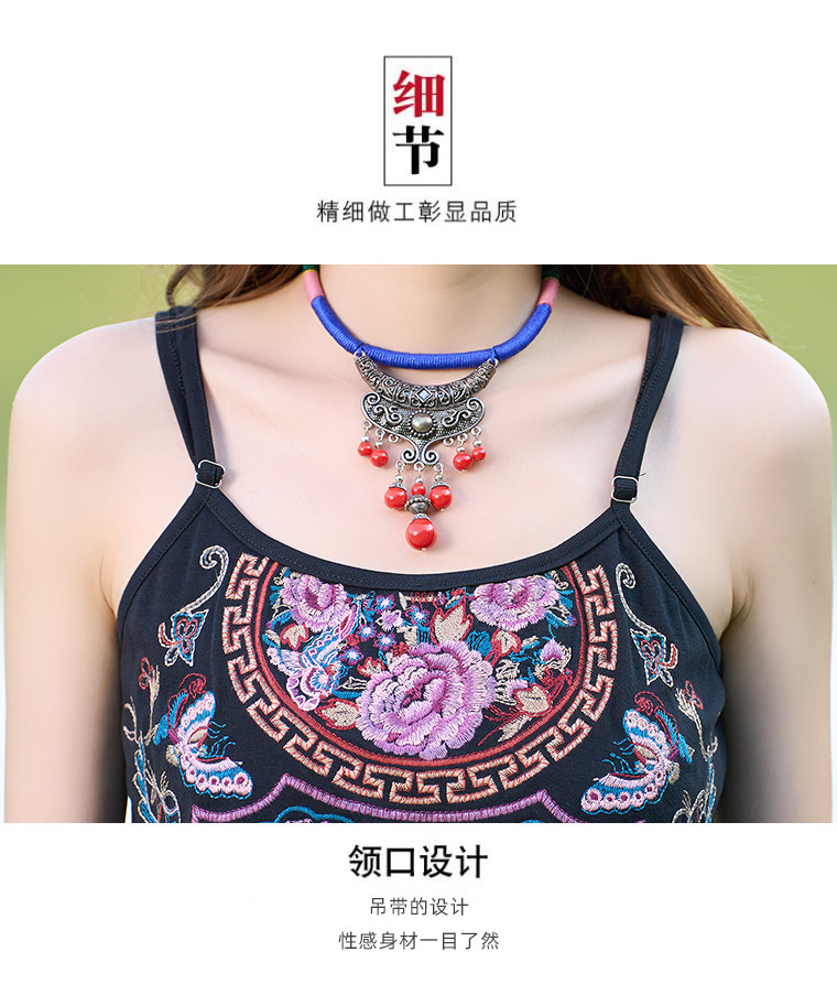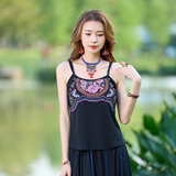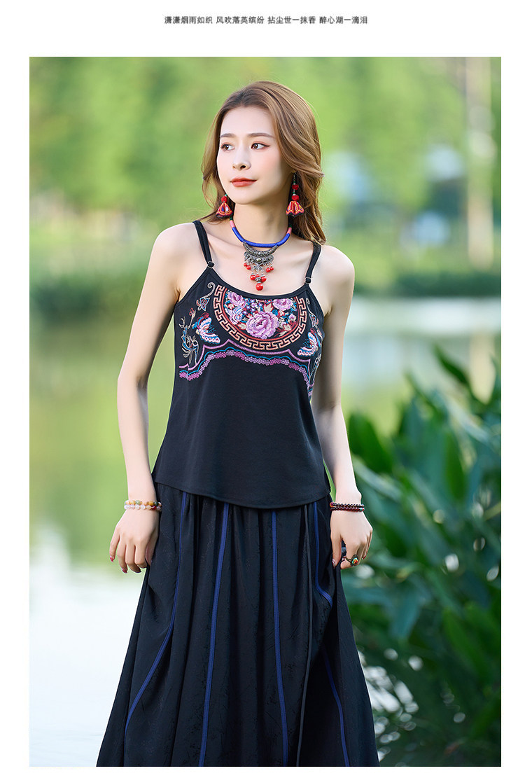 Летний этнический ретро топ с чашечками, приталенная базовая майка, этнический стиль, с вышивкой