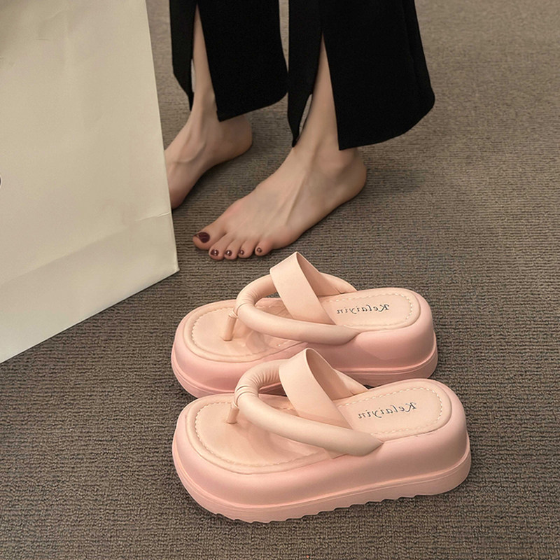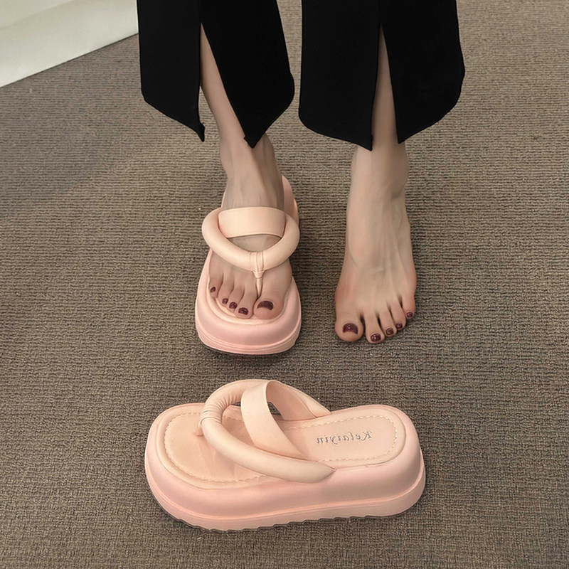 Высокие тапочки, небольшая обувь, пляжные сланцы на платформе, слайдеры, популярно в интернете, изысканный стиль