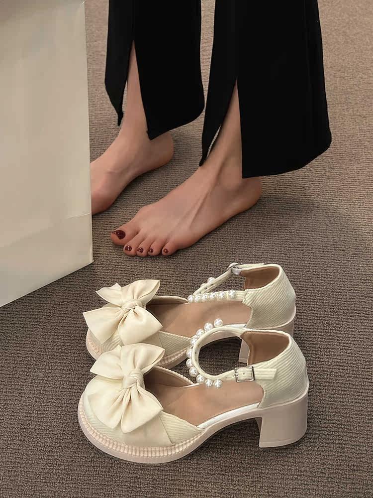 Сандалии с бантиком, летняя обувь для кожаной обуви, французский стиль, изысканный стиль, 2023