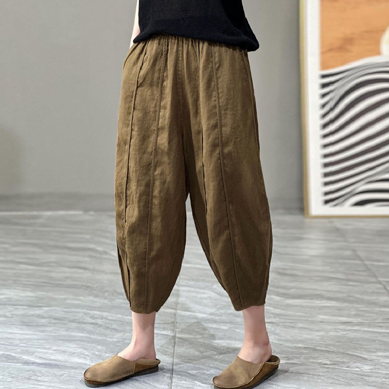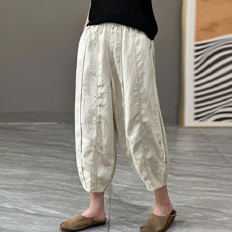 Тонкие штаны, из хлопка и льна, большой размер, оверсайз