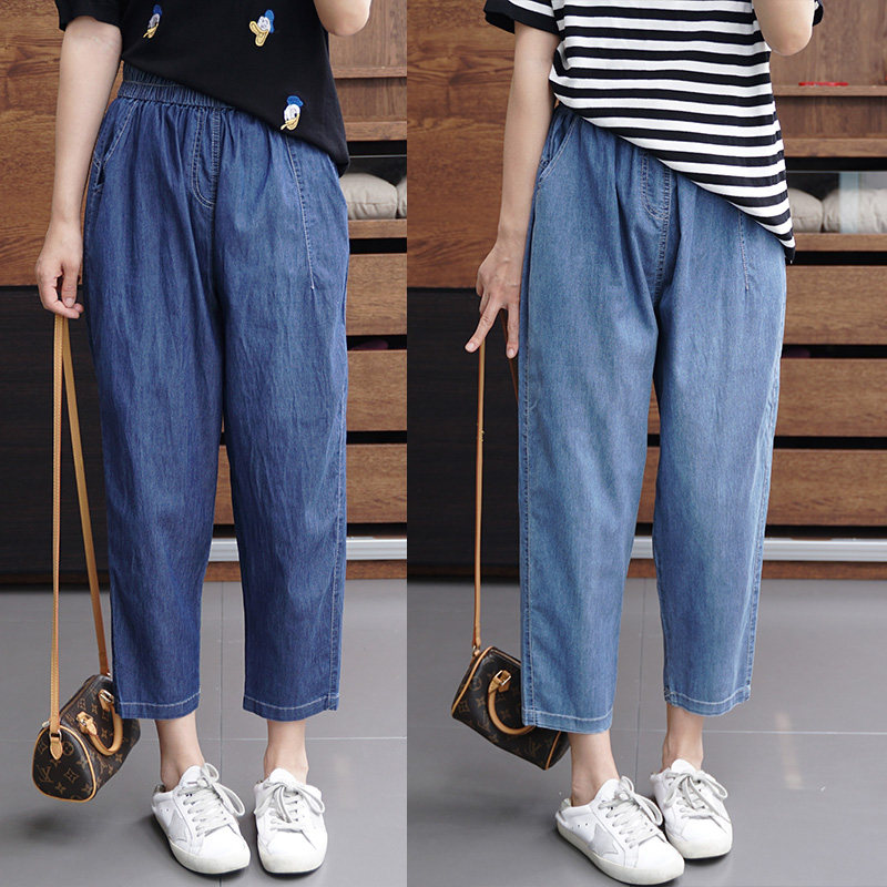 Ультратонкие джинсы, штаны, большой размер, высокая талия, свободный крой