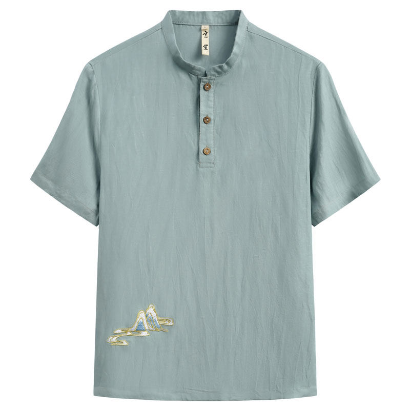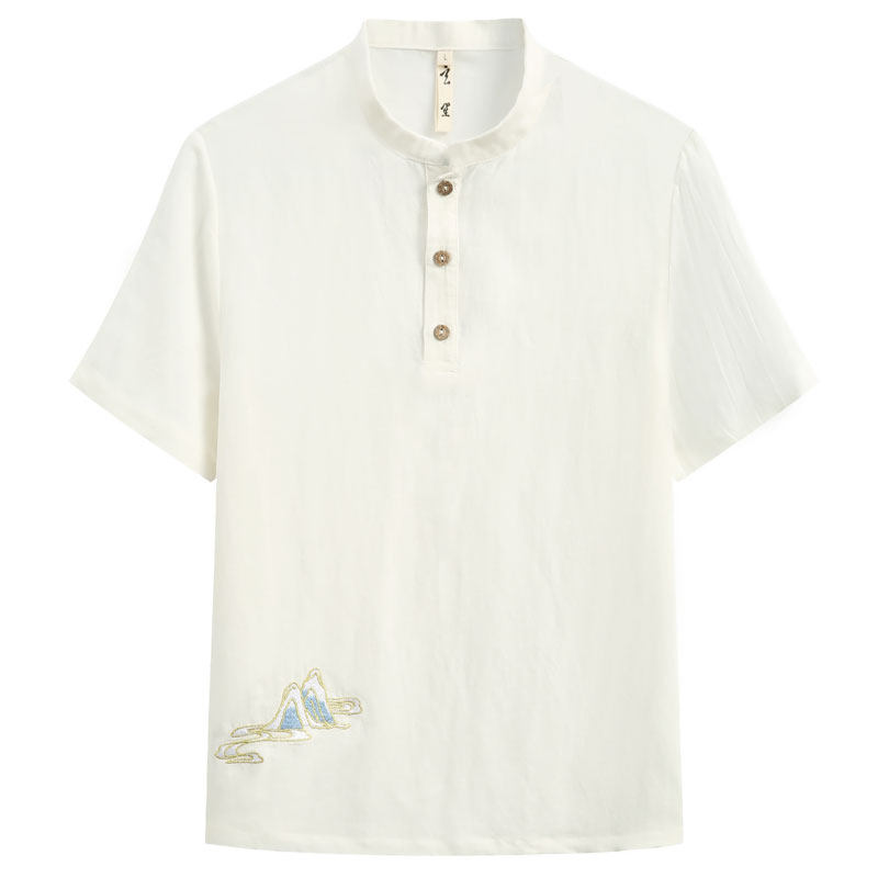 Летняя футболка с коротким рукавом для мальчиков, тонкая рубашка для отдыха, китайский стиль, оверсайз, с вышивкой