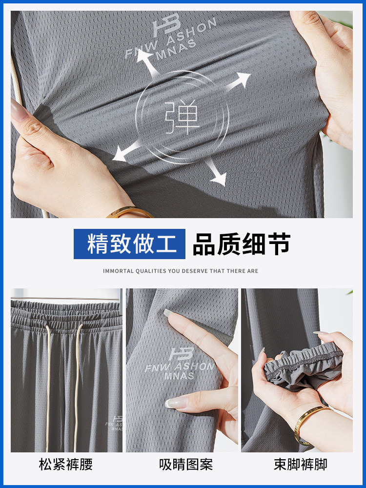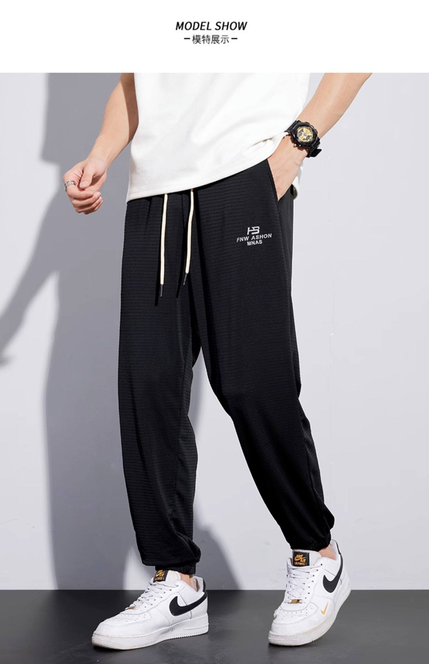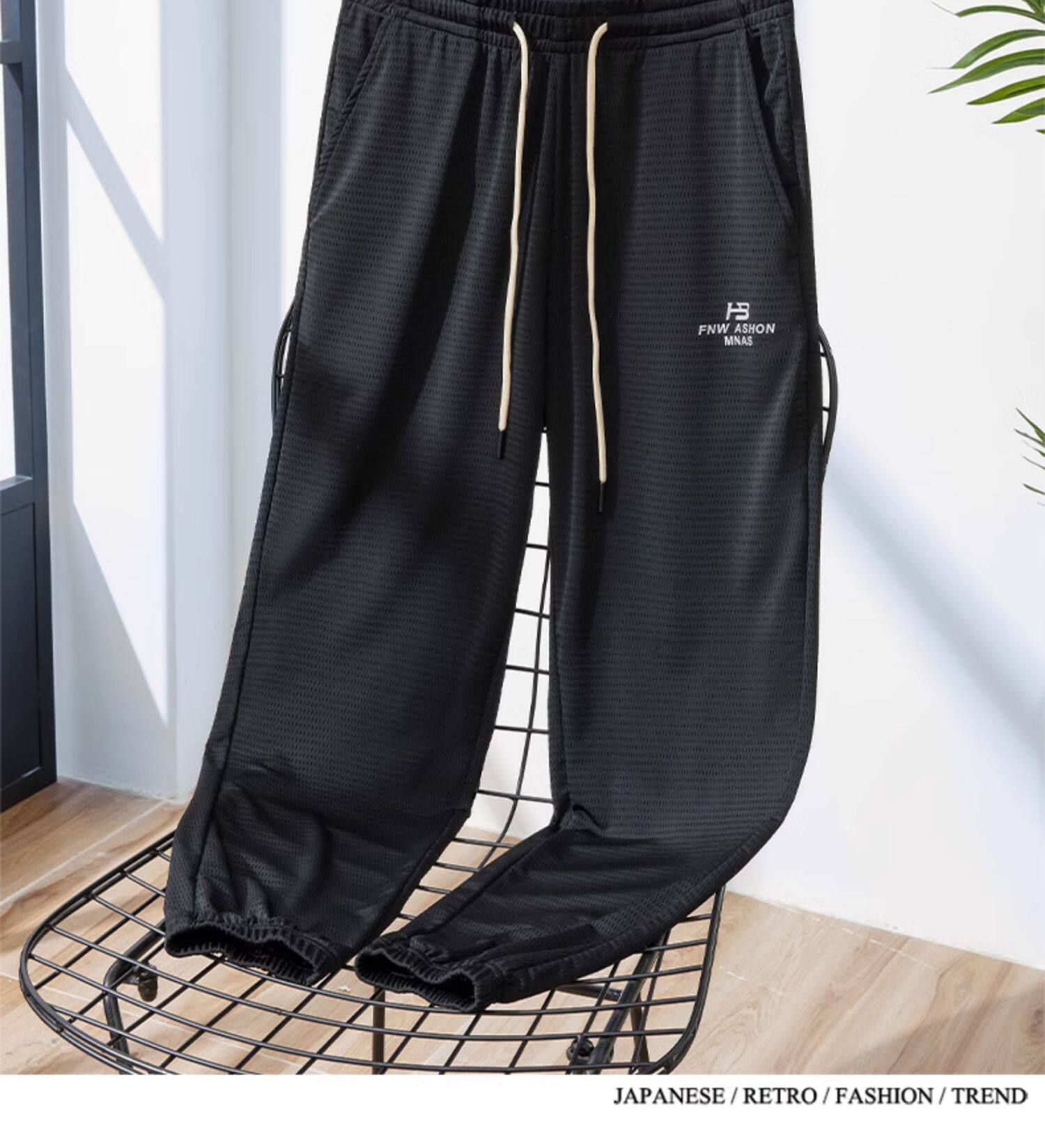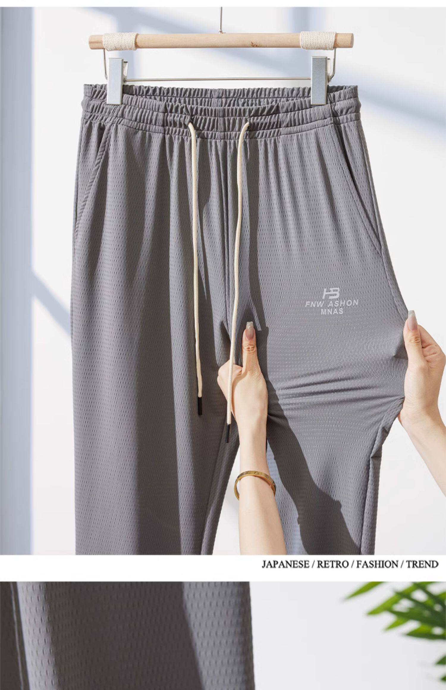Мужские шелковые летние тонкие штаны, эластичные трендовые универсальные быстросохнущие повседневные брюки, оверсайз, свободный крой
