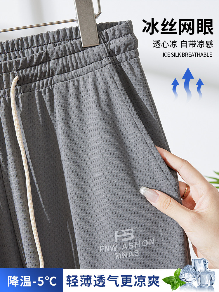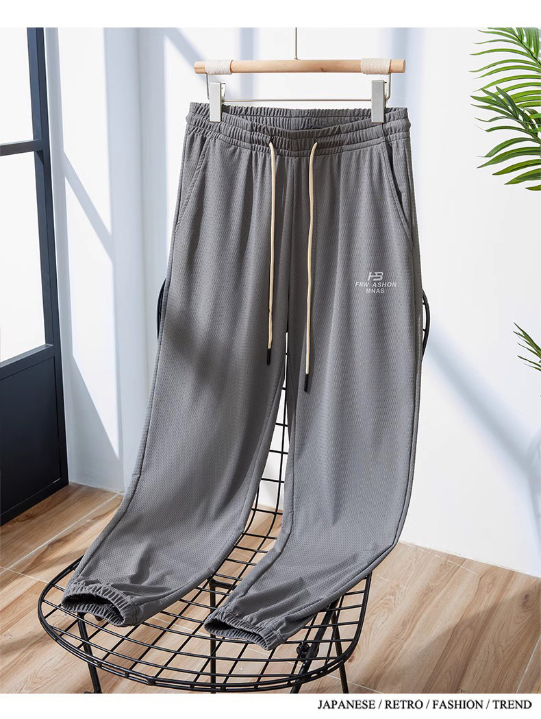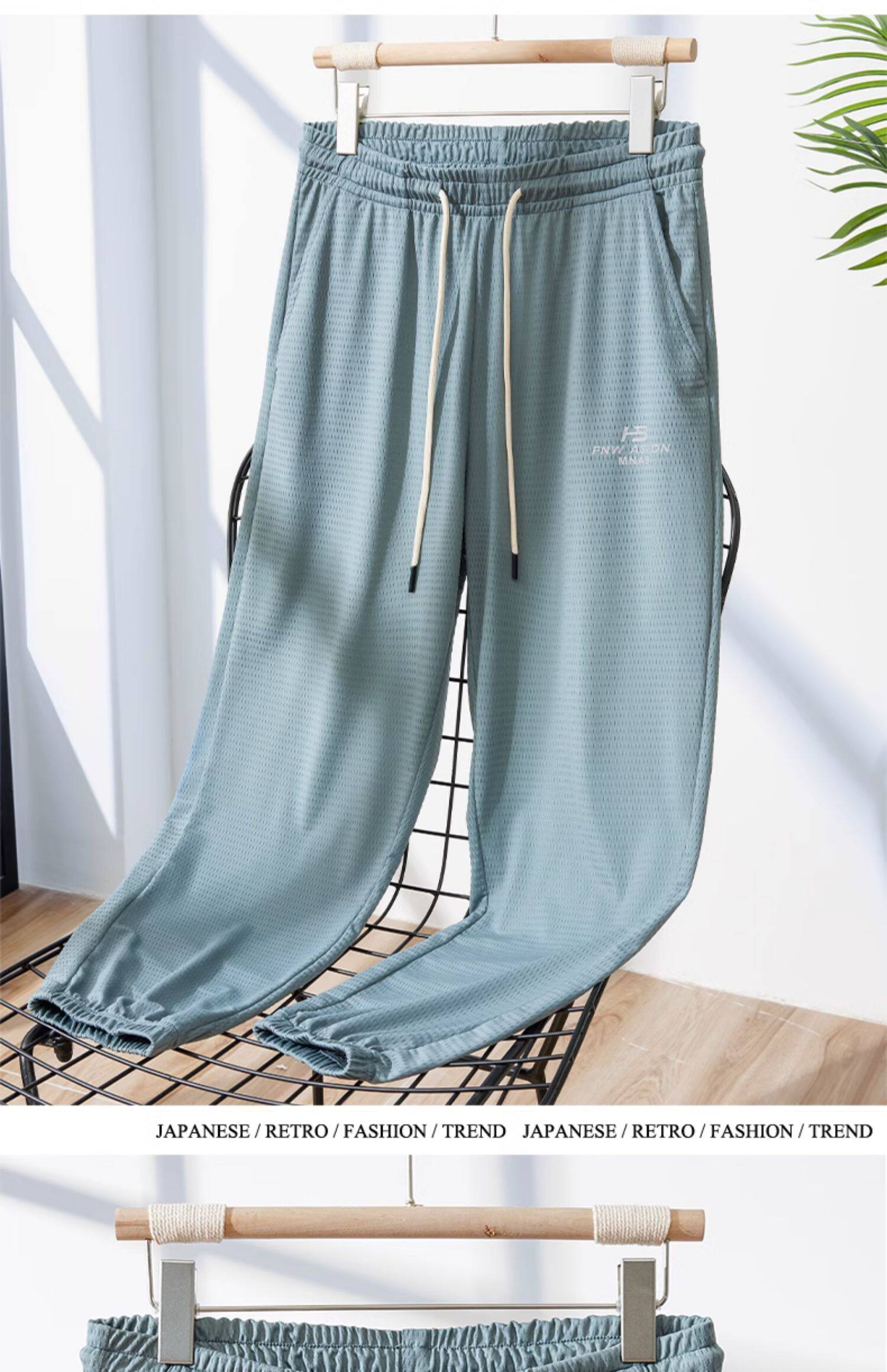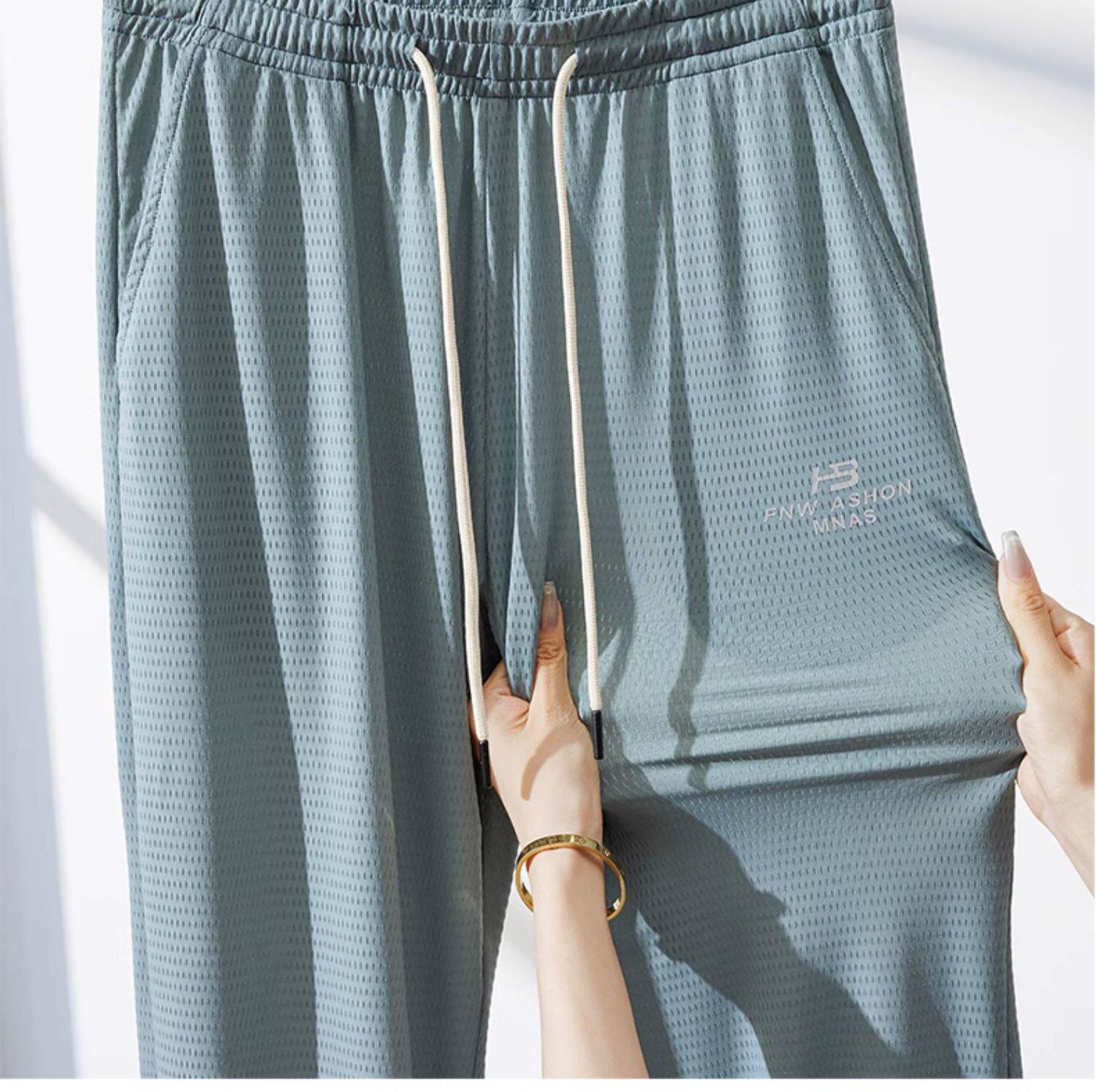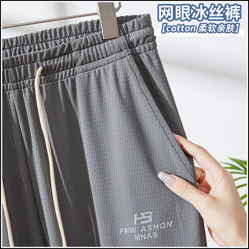 Мужские шелковые летние тонкие штаны, эластичные трендовые универсальные быстросохнущие повседневные брюки, оверсайз, свободный крой