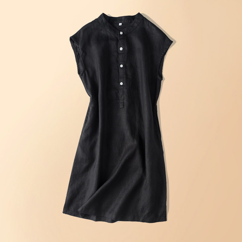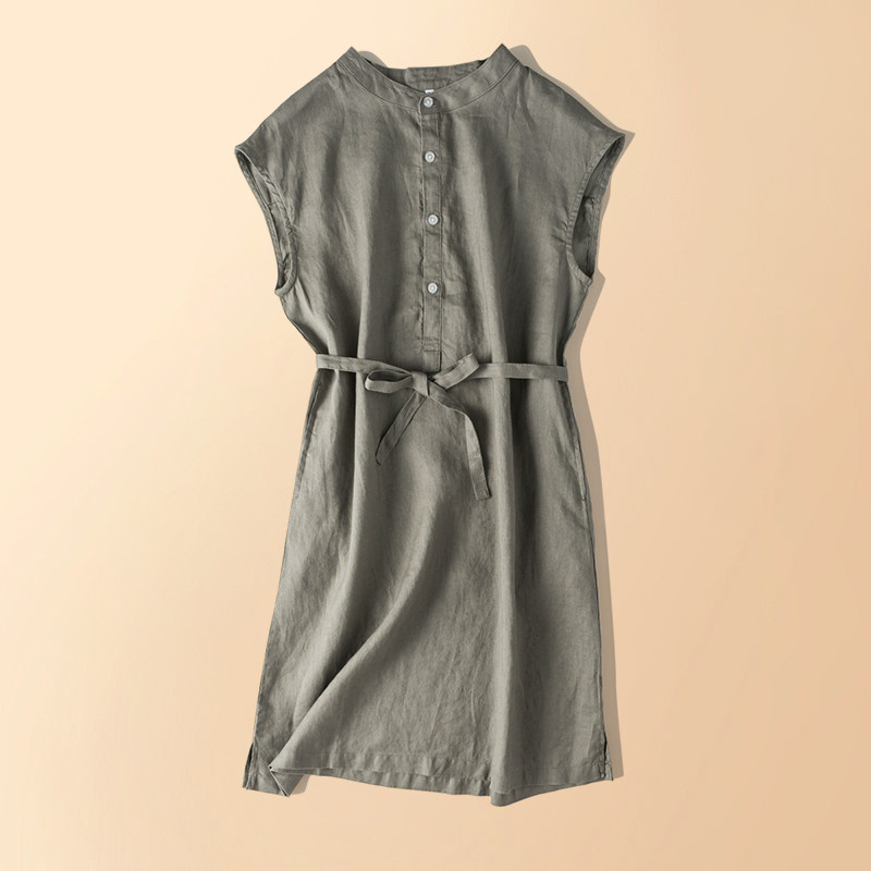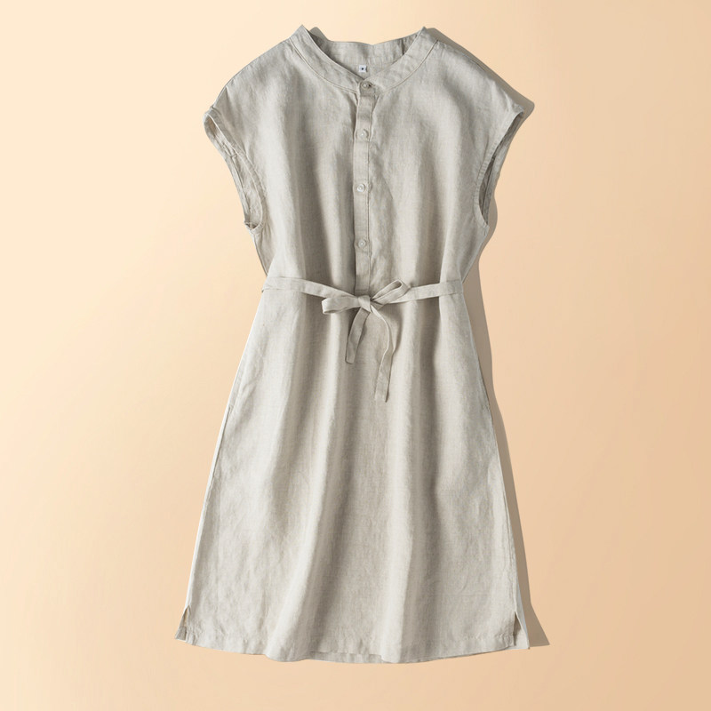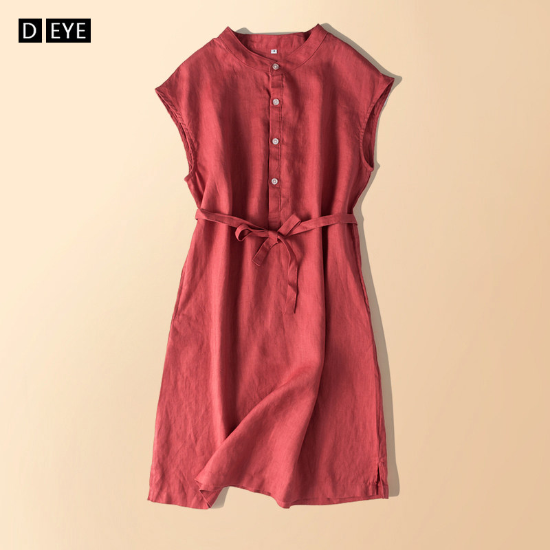 Красное платье без рукавов с круглым воротником, длинный корсет, из хлопка и льна, средней длины, А-силуэт