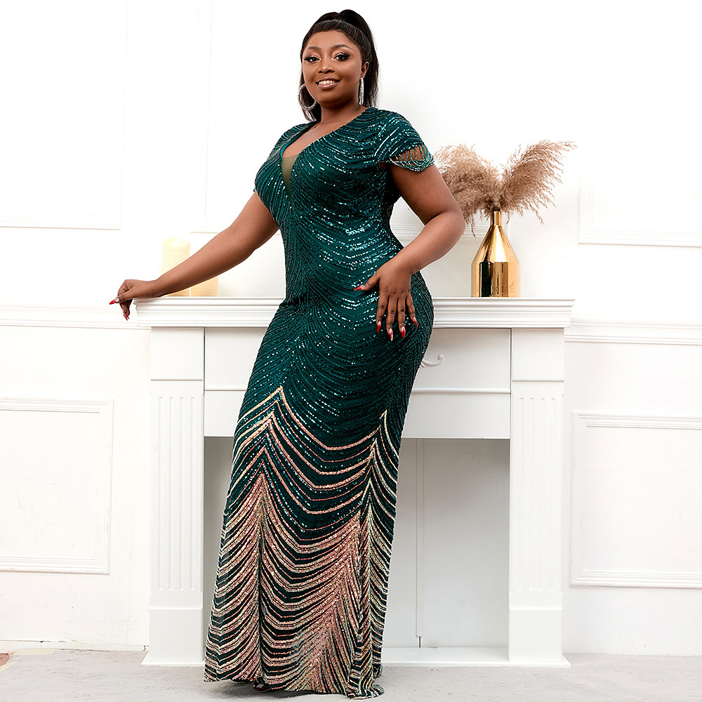 Плюс размер Deep V Nece Green Seciet Evening Dress Sexy Party