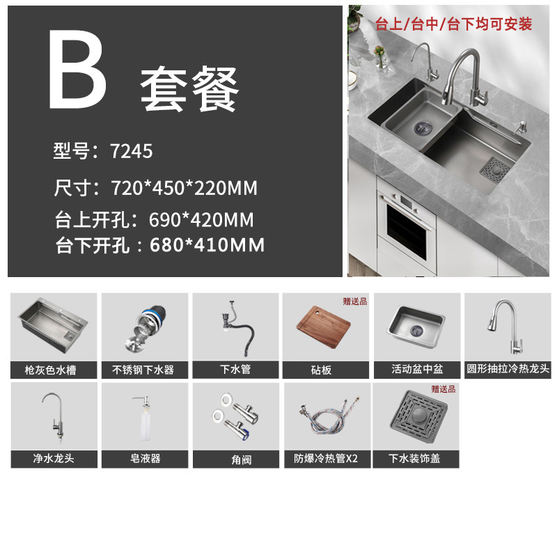 Серый серый 7245 раковина SUS304 из нержавеющей стали нано -сила плата 69*42 см. Полюс платежного полюса 68*35