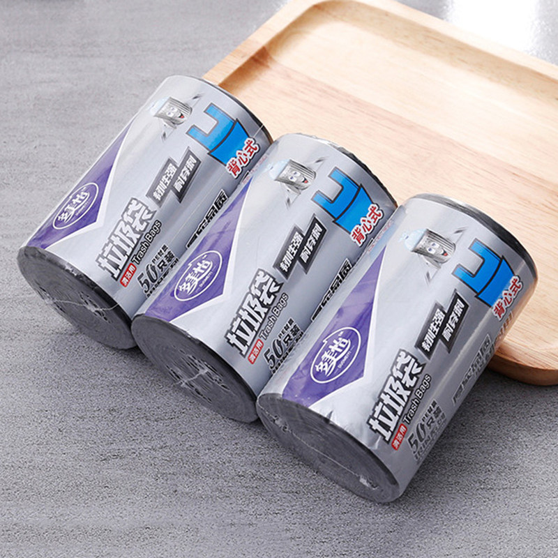 Портативный большой черный пластиковый мусорный мешок для домашнего использования, увеличенная толщина, на шнурках
