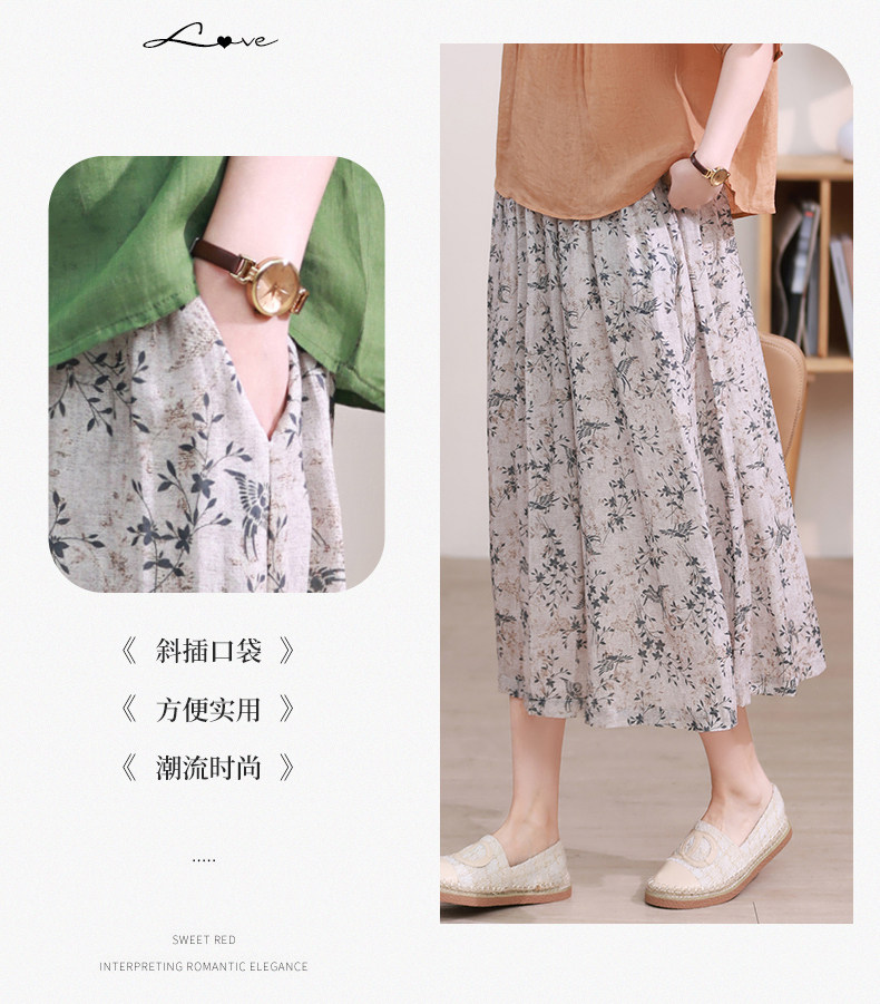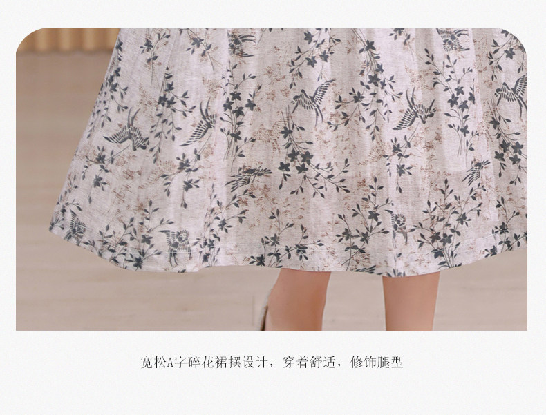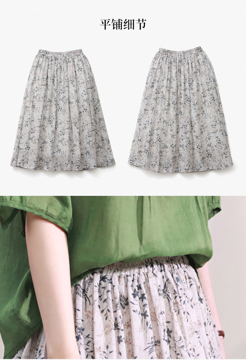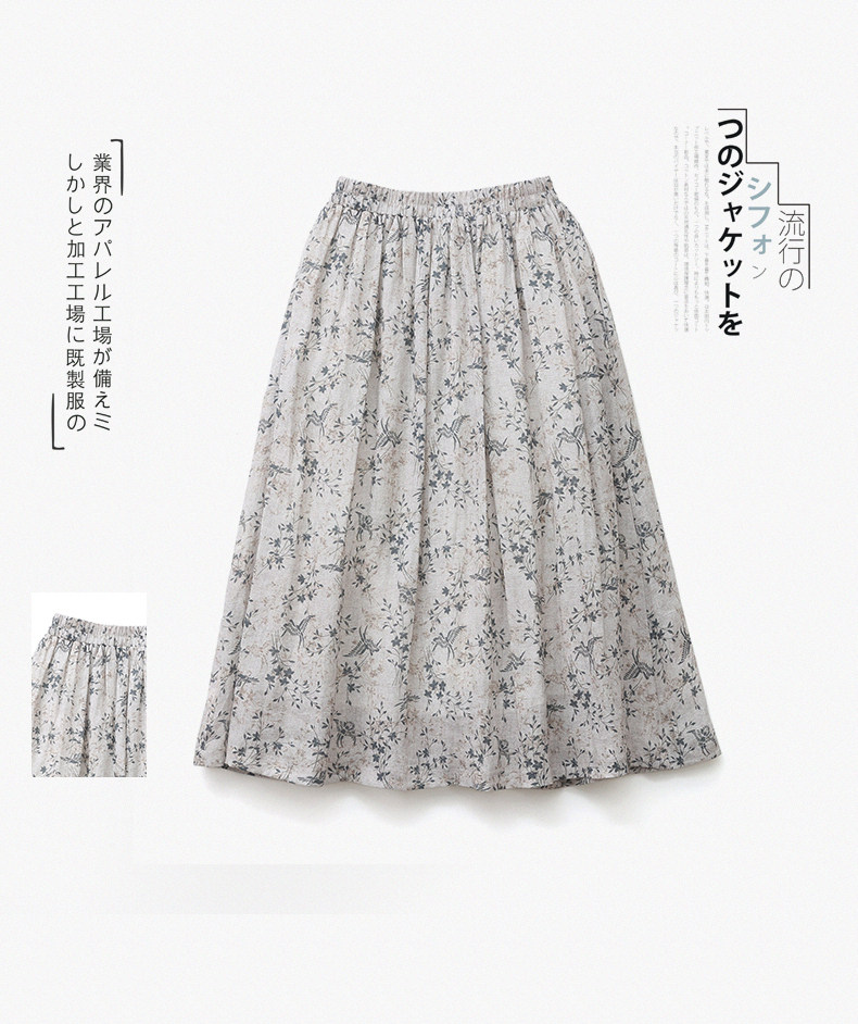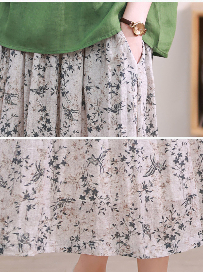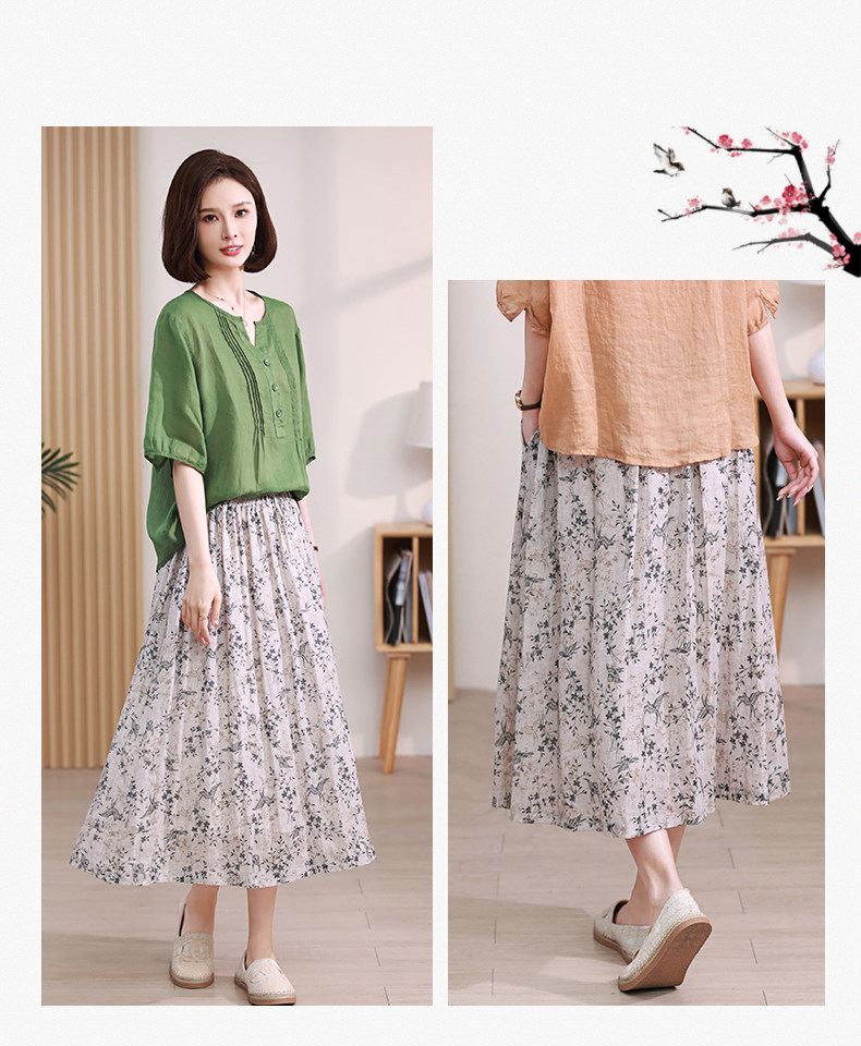 Длинная ретро юбка в складку, цветочный принт, средней длины, из хлопка и льна, А-силуэт