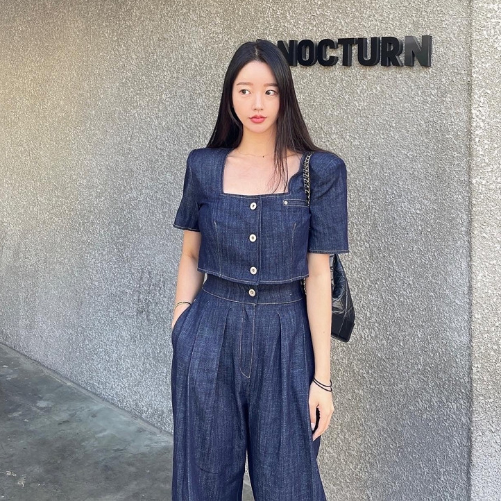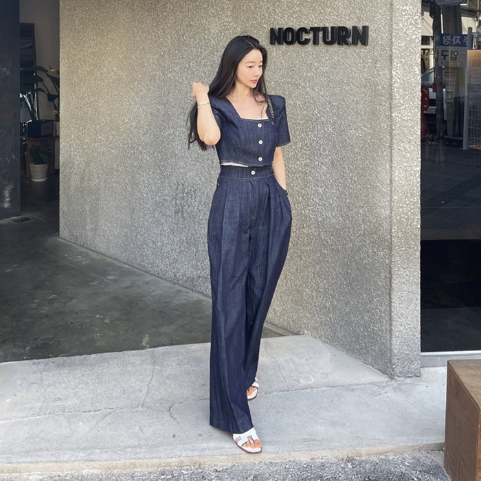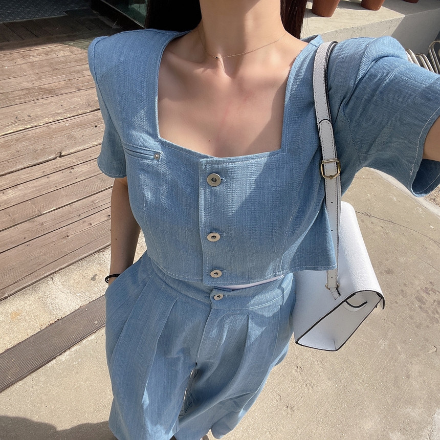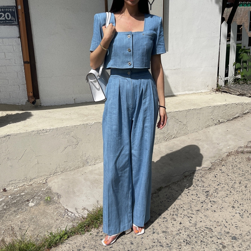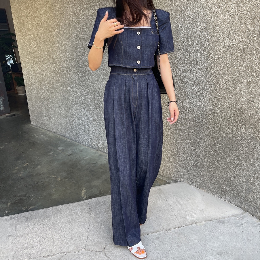 Южнокорейский товар, куртка, джинсы, штаны, квадратный вырез, рукава фонарики, высокая талия, свободный крой