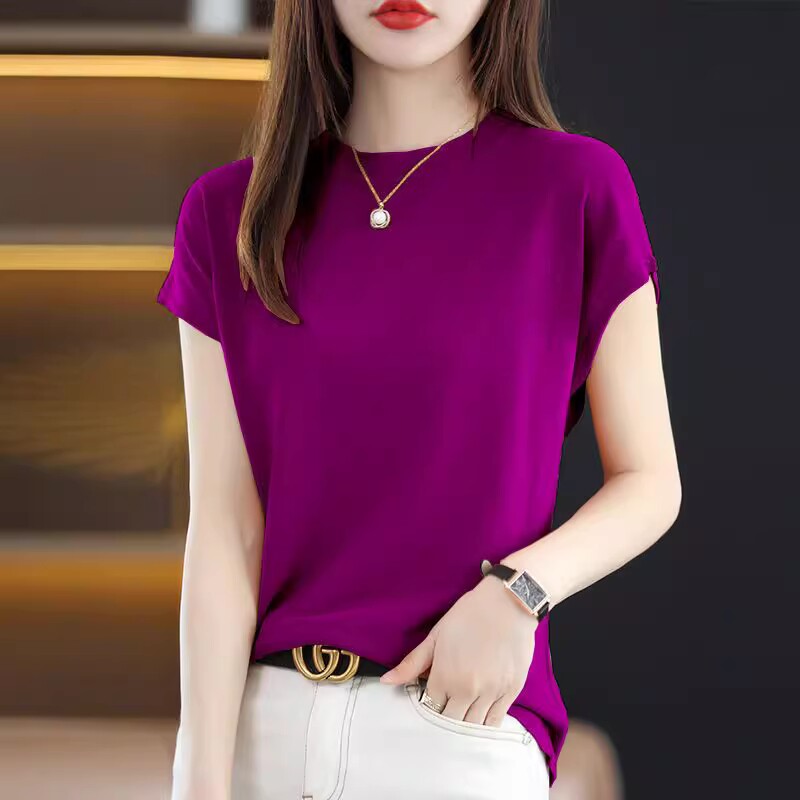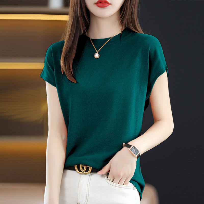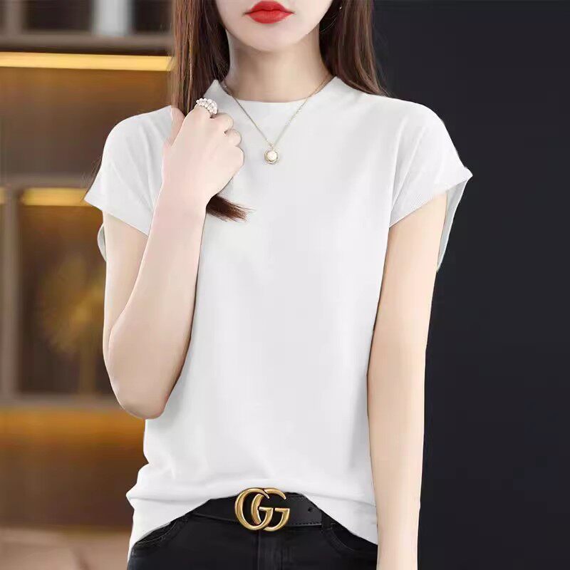 Летняя тонкая трикотажная базовая приятная телу футболка с коротким рукавом, комплект, свободный крой, высокий воротник, 3 предмета