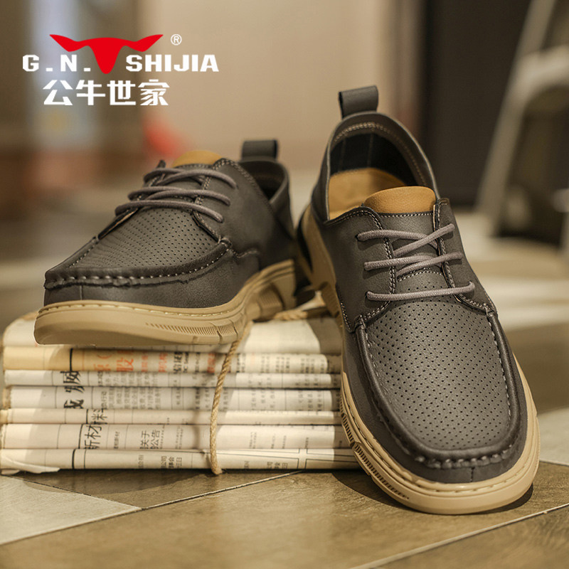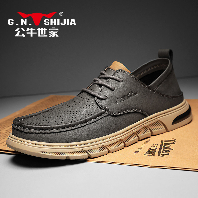 Мужская летняя дышащая обувь для отдыха для кожаной обуви, из натуральной кожи, мягкая подошва