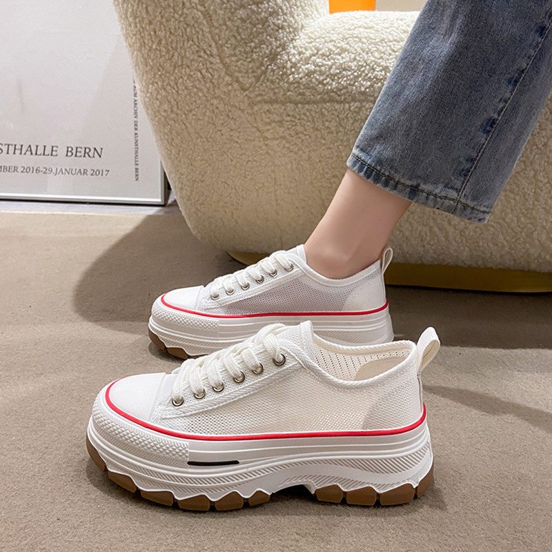Тканевая летняя сетчатая обувь на платформе, высокие дышащие кроссовки