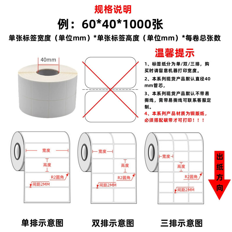 Принтер с медной меткой ролика 30 19 19 25 32 40 50 60 70 80 90 100 Черные углеродные ремня штрих-кода бумажная печать и двойной ряд Три ряда медная пластина Самоадлеящие пустые наклейки