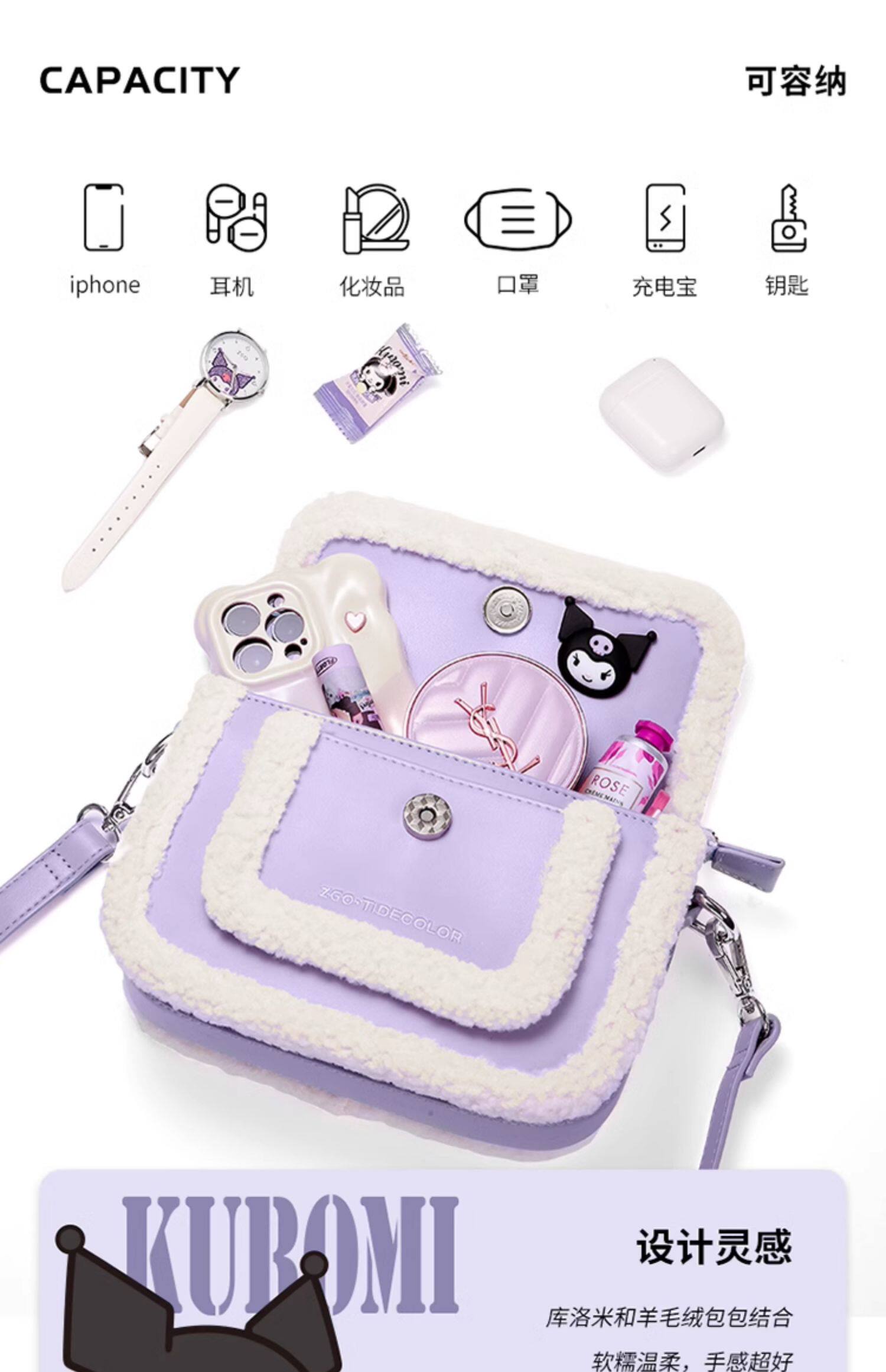 Tidecolor Co-Brense Cool Lomi Plush Cross Bag для женщин осенью и зимней сумкой для плеча Sanrio Kulomi