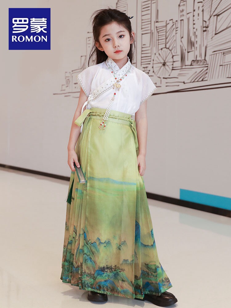 Юбка, ханьфу, детское летнее платье, китайский стиль, коллекция 2023, семейный стиль