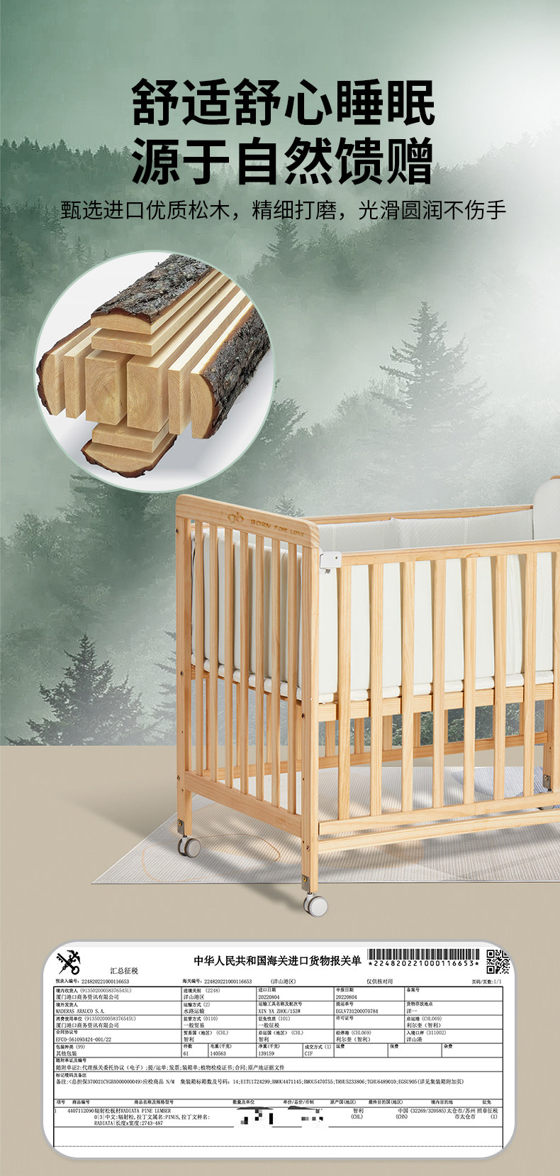Универсальная детская кроватка из натурального дерева для новорожденных для кровати