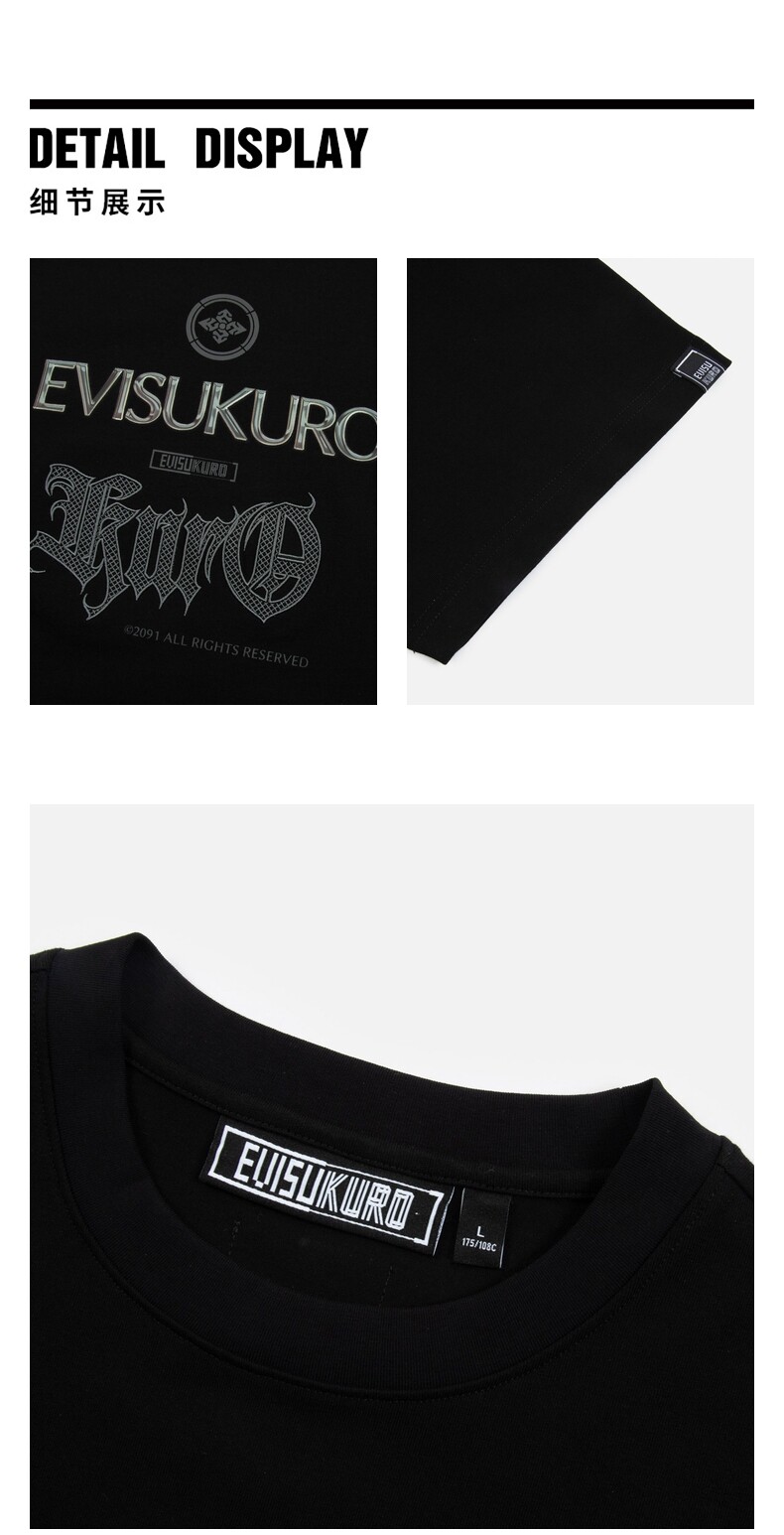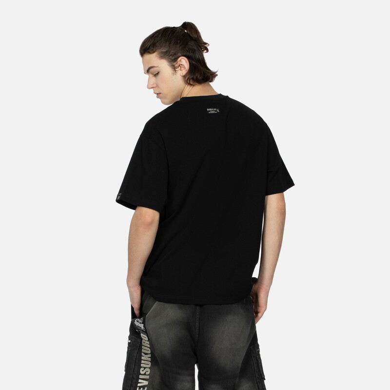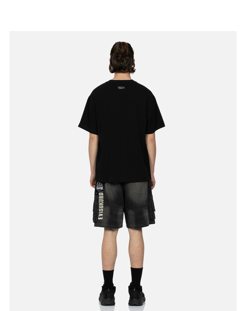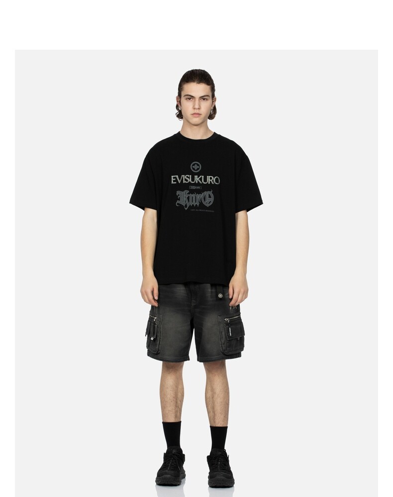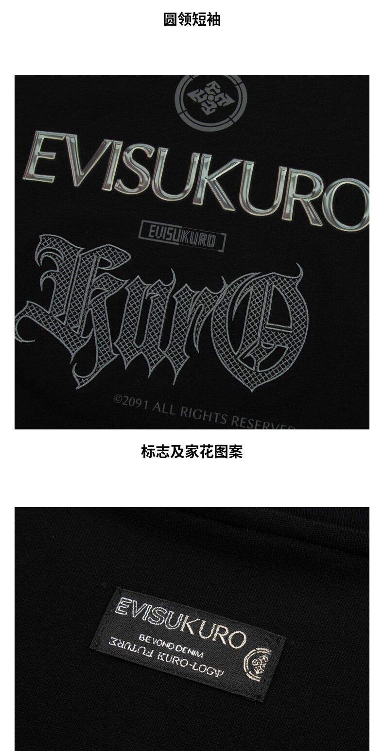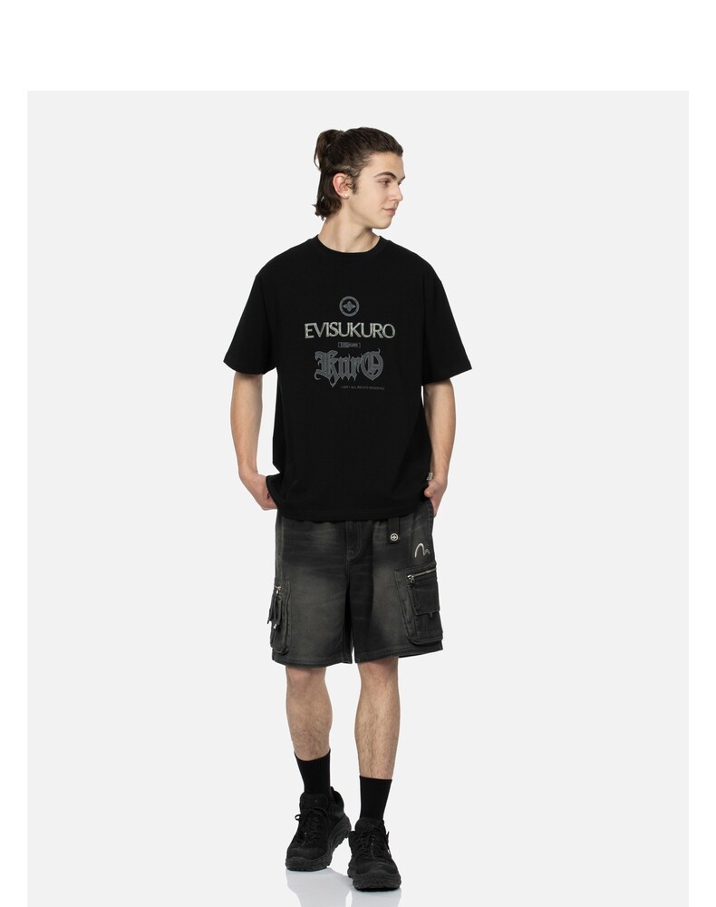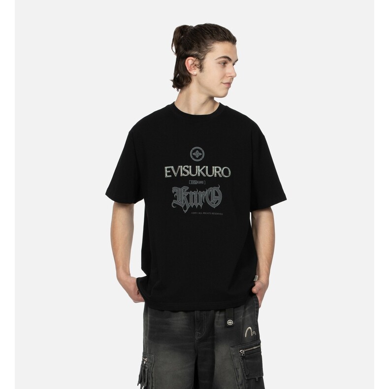 Мужская черная свободная футболка EVISUKURO с логотипом дома и цветочным узором, круглым вырезом, короткими рукавами, 2ESGNM3TS631RXCT