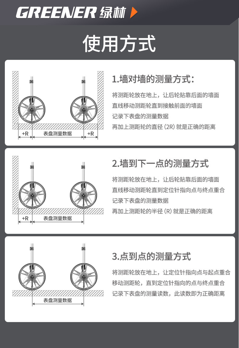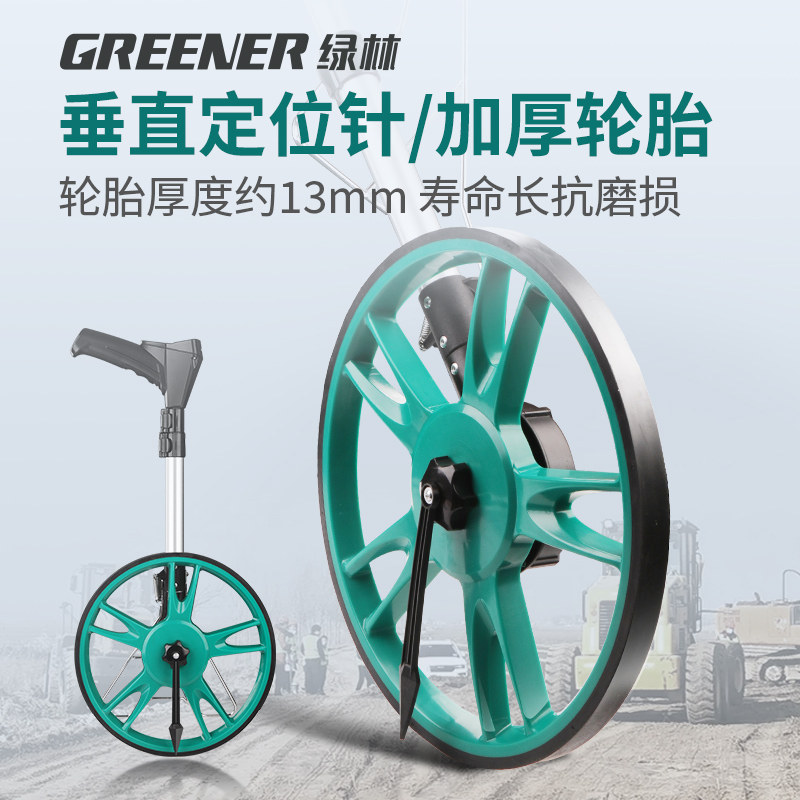 Рука зеленого леса размышляет, что электроны колесного колеса расстояния на колесах инструмента показывают инструмент измерения измерения высокой точности измерения