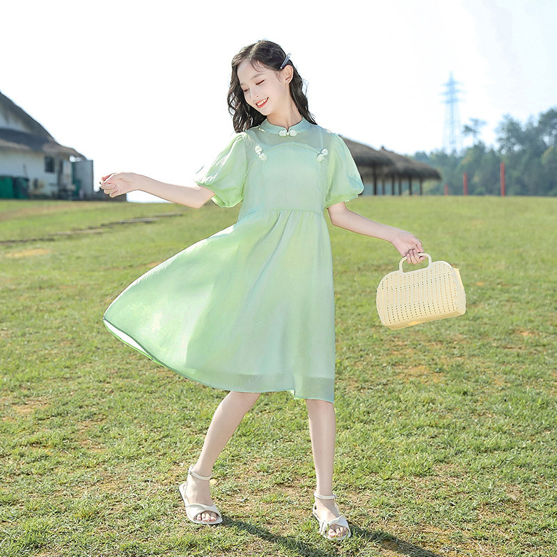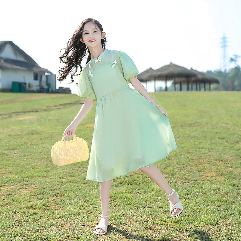 Летнее шифоновое платье, тонкая детская летняя одежда, юбка, коллекция 2023, в западном стиле, подходит для подростков, китайский стиль