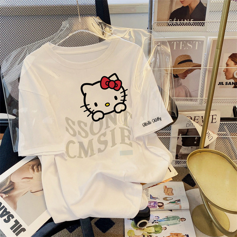 Hello Kitty, летняя японская мультяшная хлопковая футболка с коротким рукавом, свободный крой, коллекция 2023