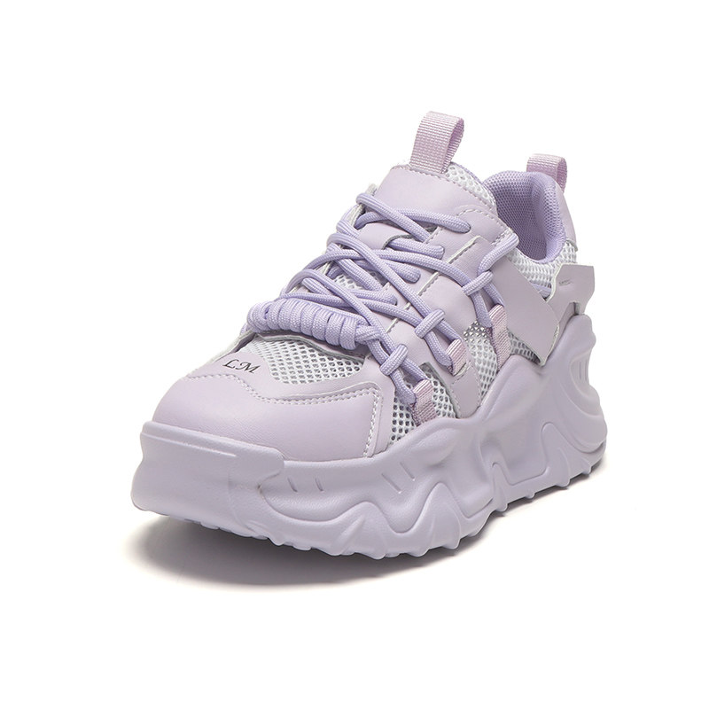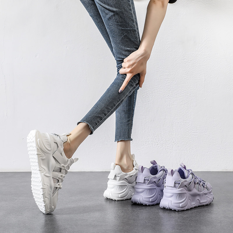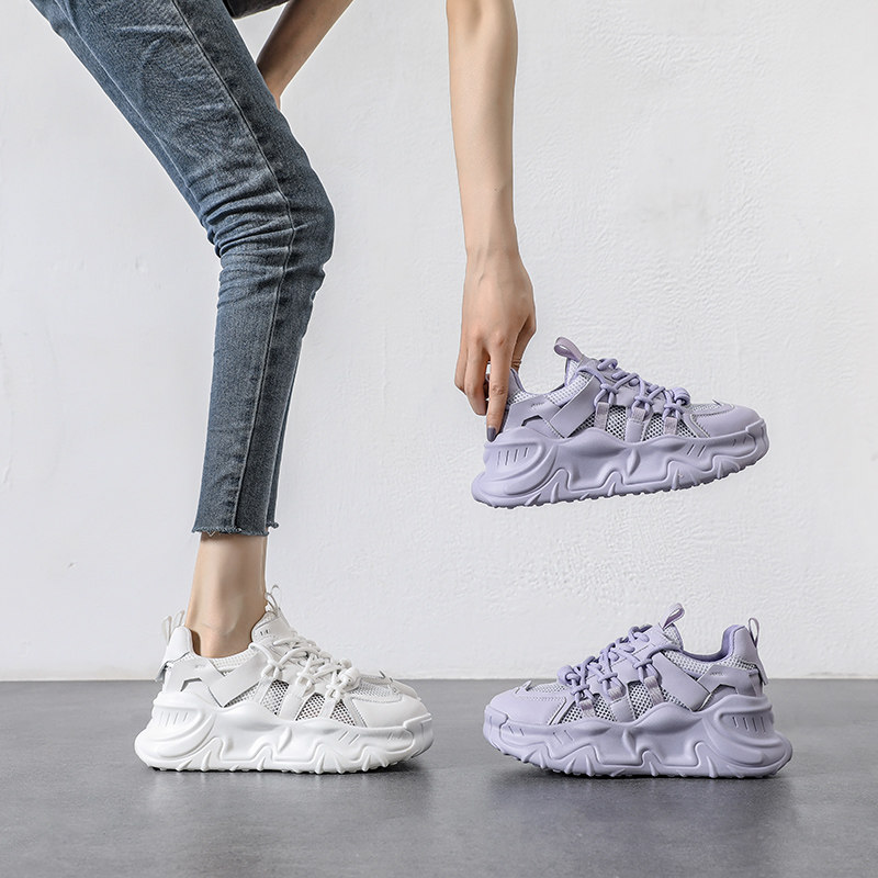 Женская дышащая обувь для папы с сетчатой полой, летняя фиолетовая спортивная обувь, новинка 2024 года, повседневная обувь на толстой подошве с удлиняющей подошвой