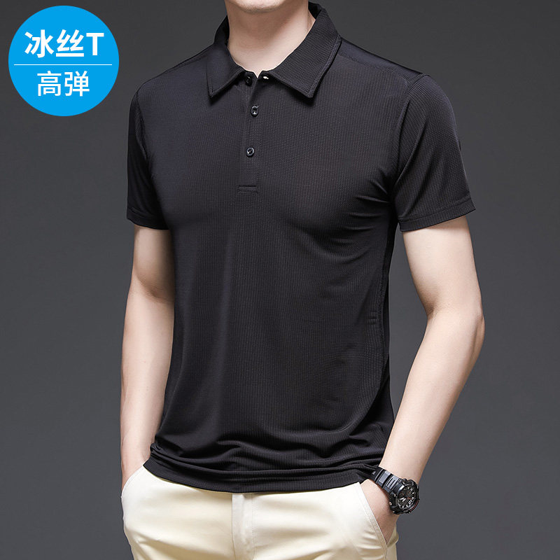 Шелковая эластичная футболка с коротким рукавом, спортивная футболка polo для отдыха для спортзала, высокий воротник