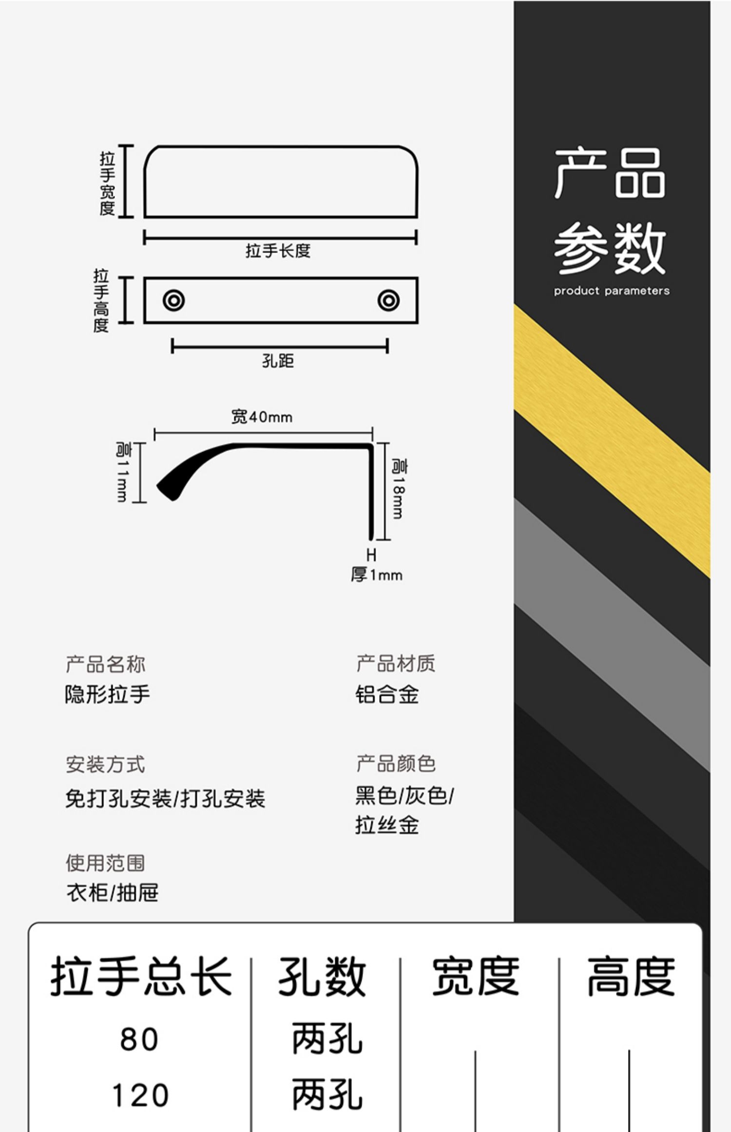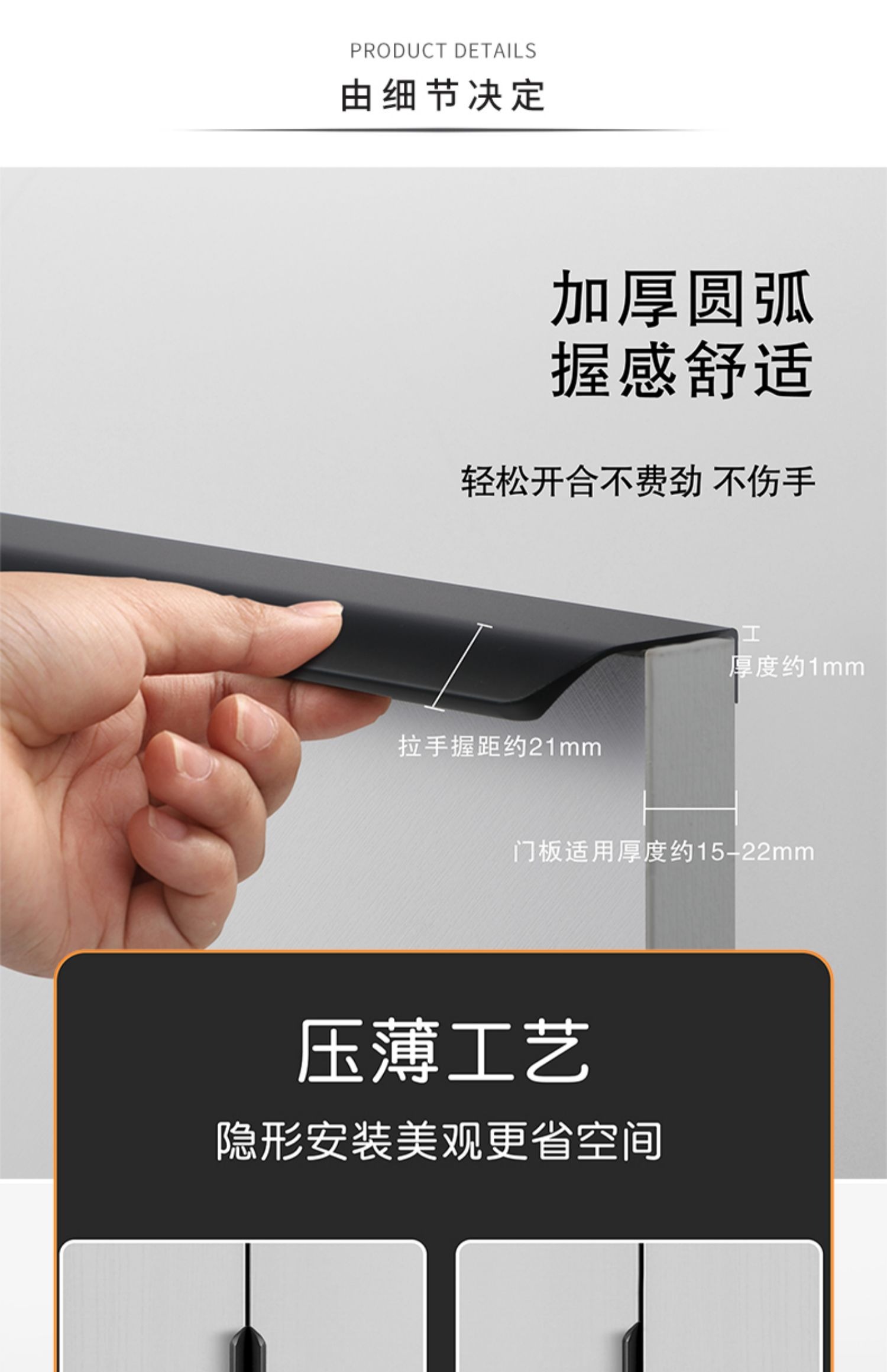 Алюминиевый сплав Скрытый дверной дверной палец и ручка с длинной моделью встроена