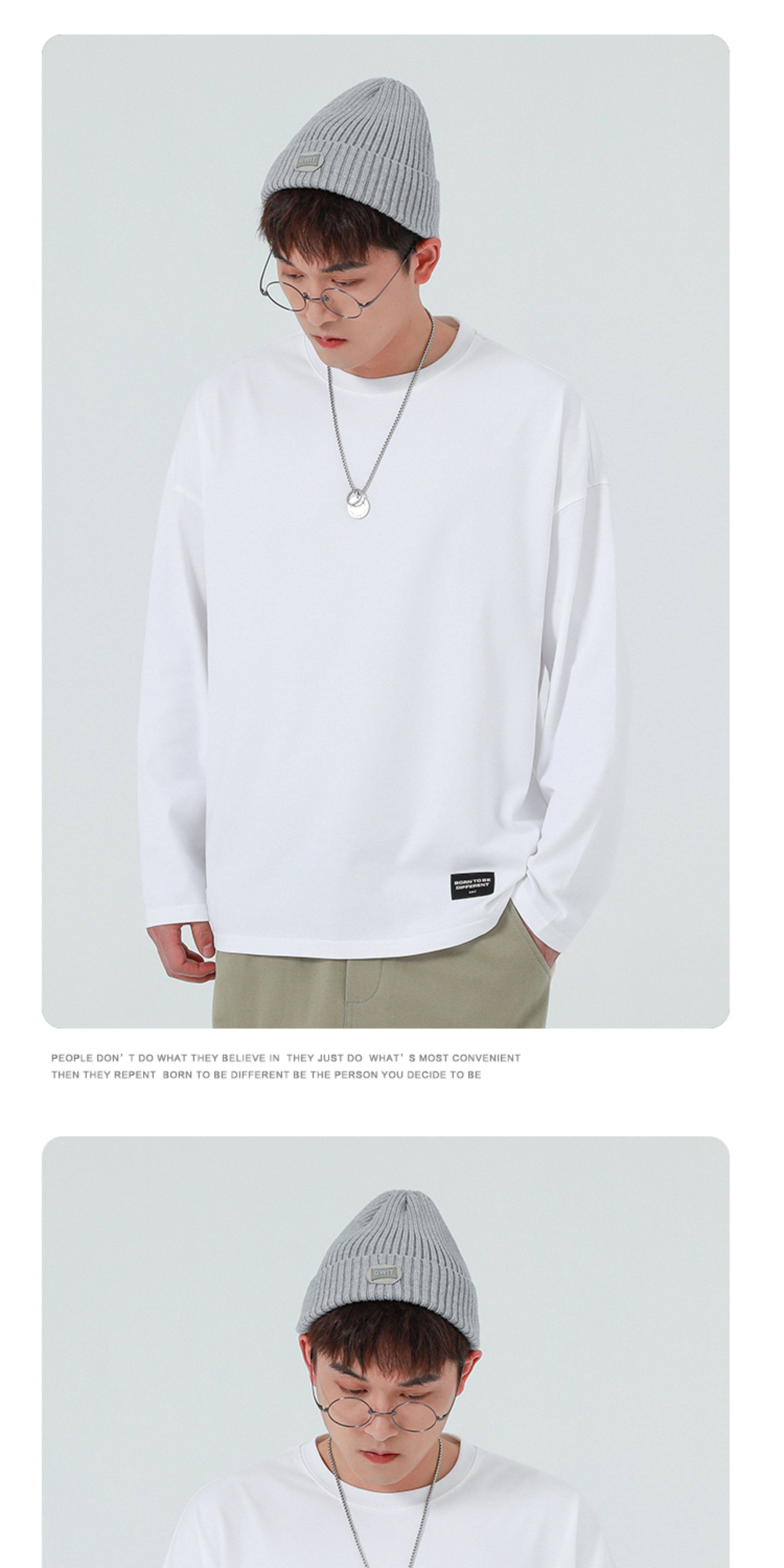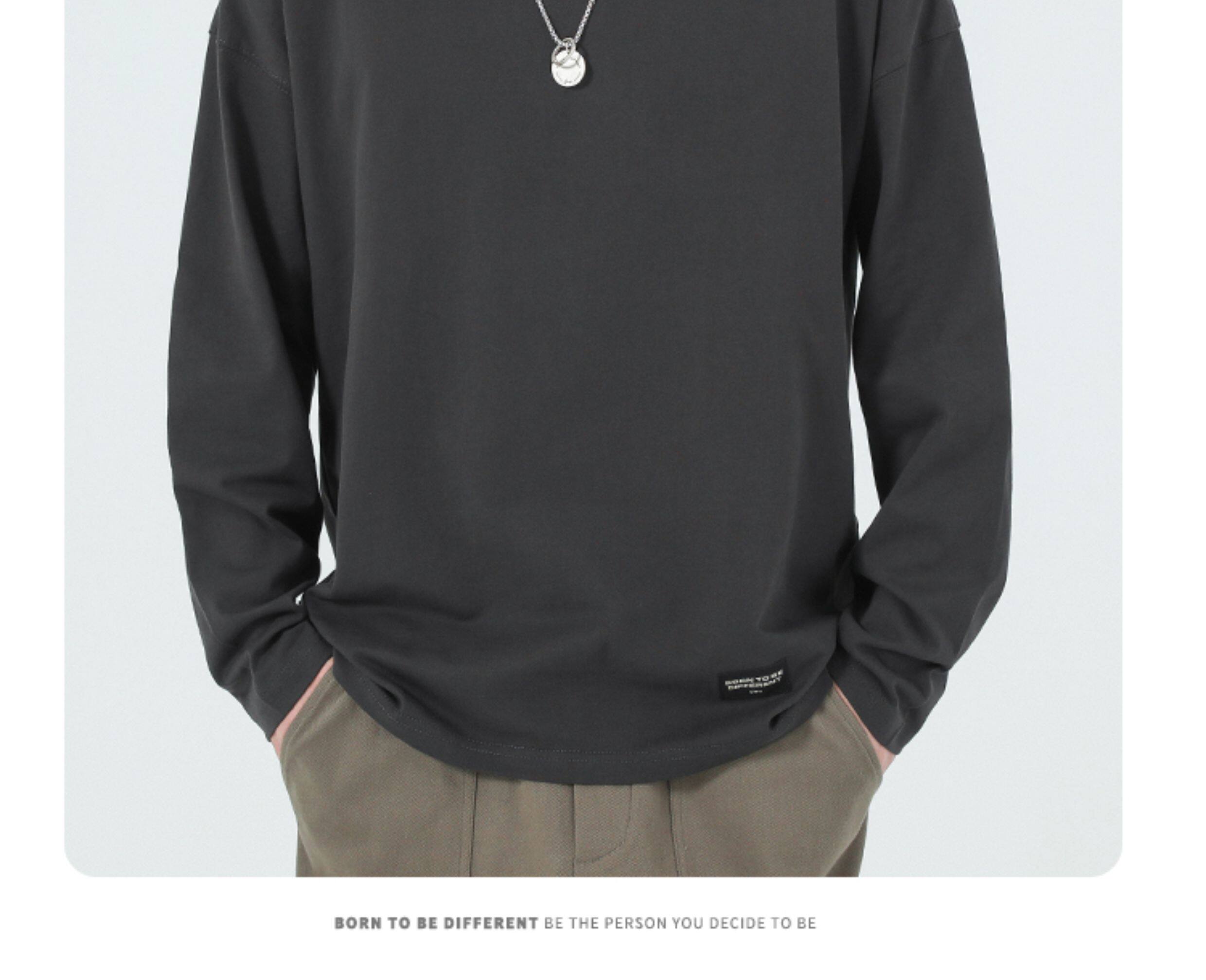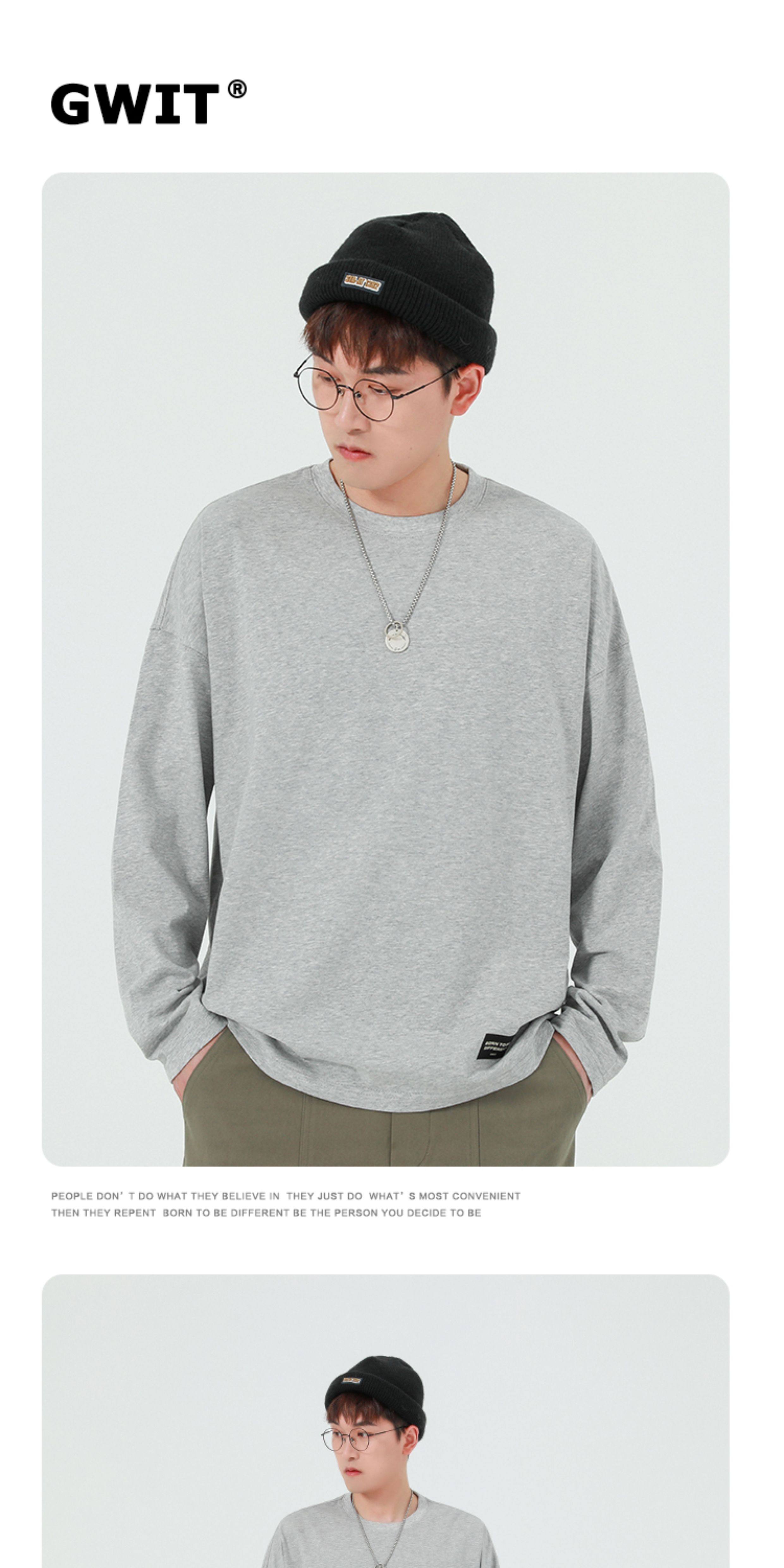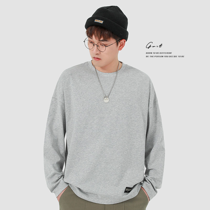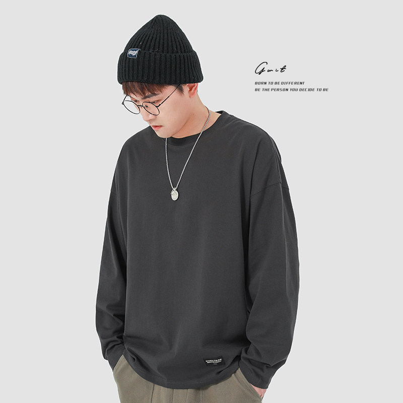 GWIT Осенний хлопковый базовый лонгслив с круглым воротником, 300 грамм