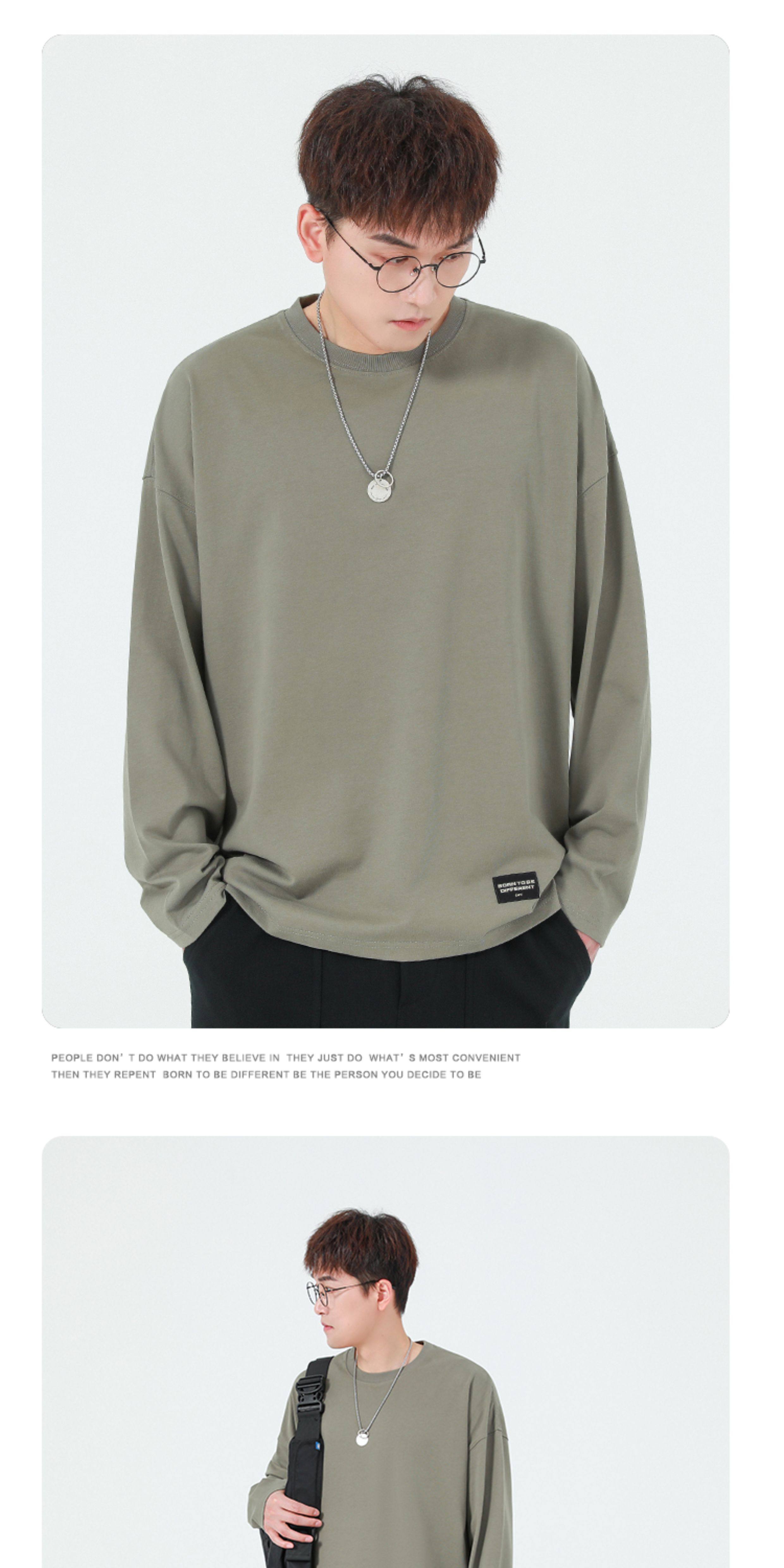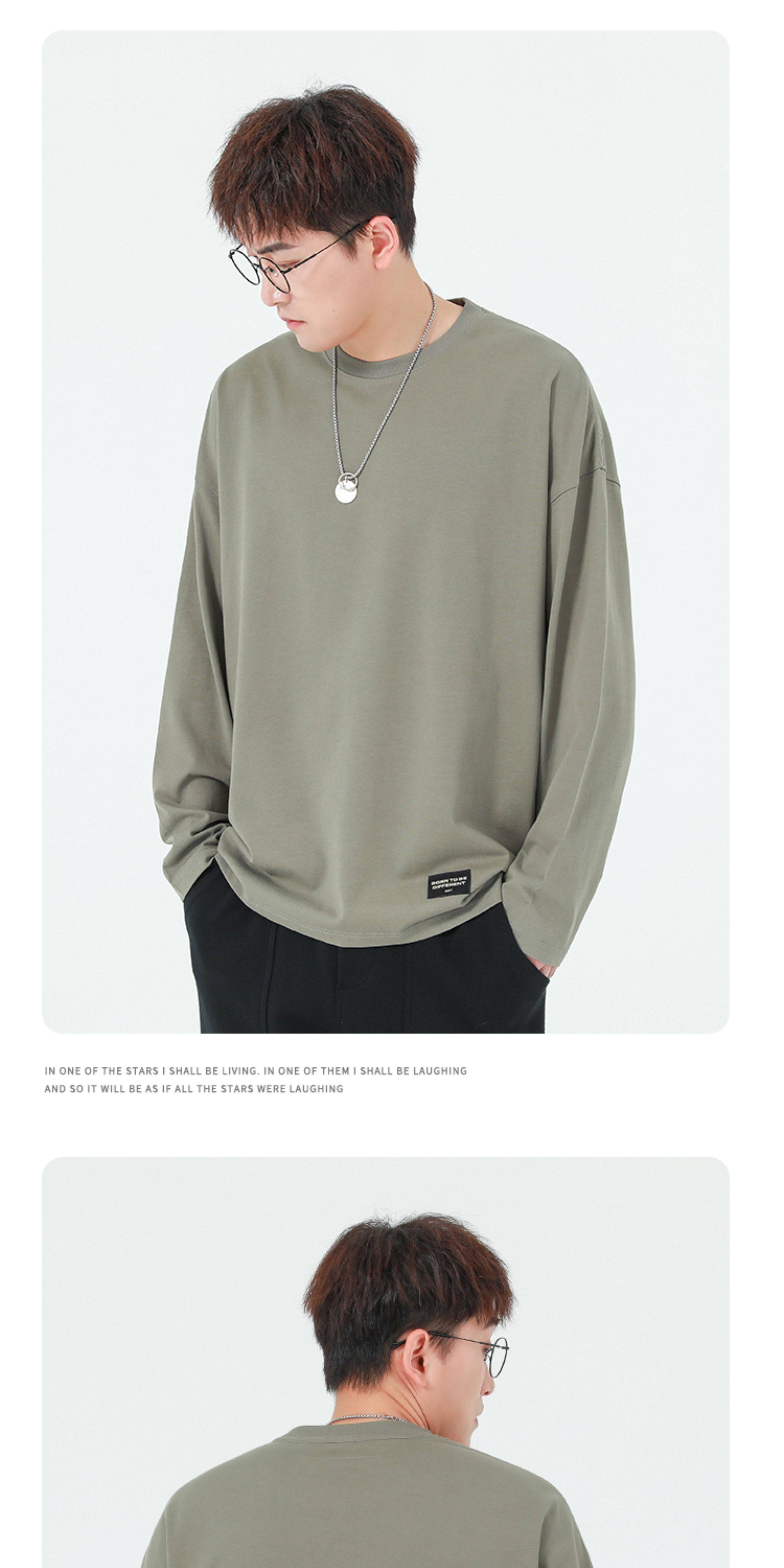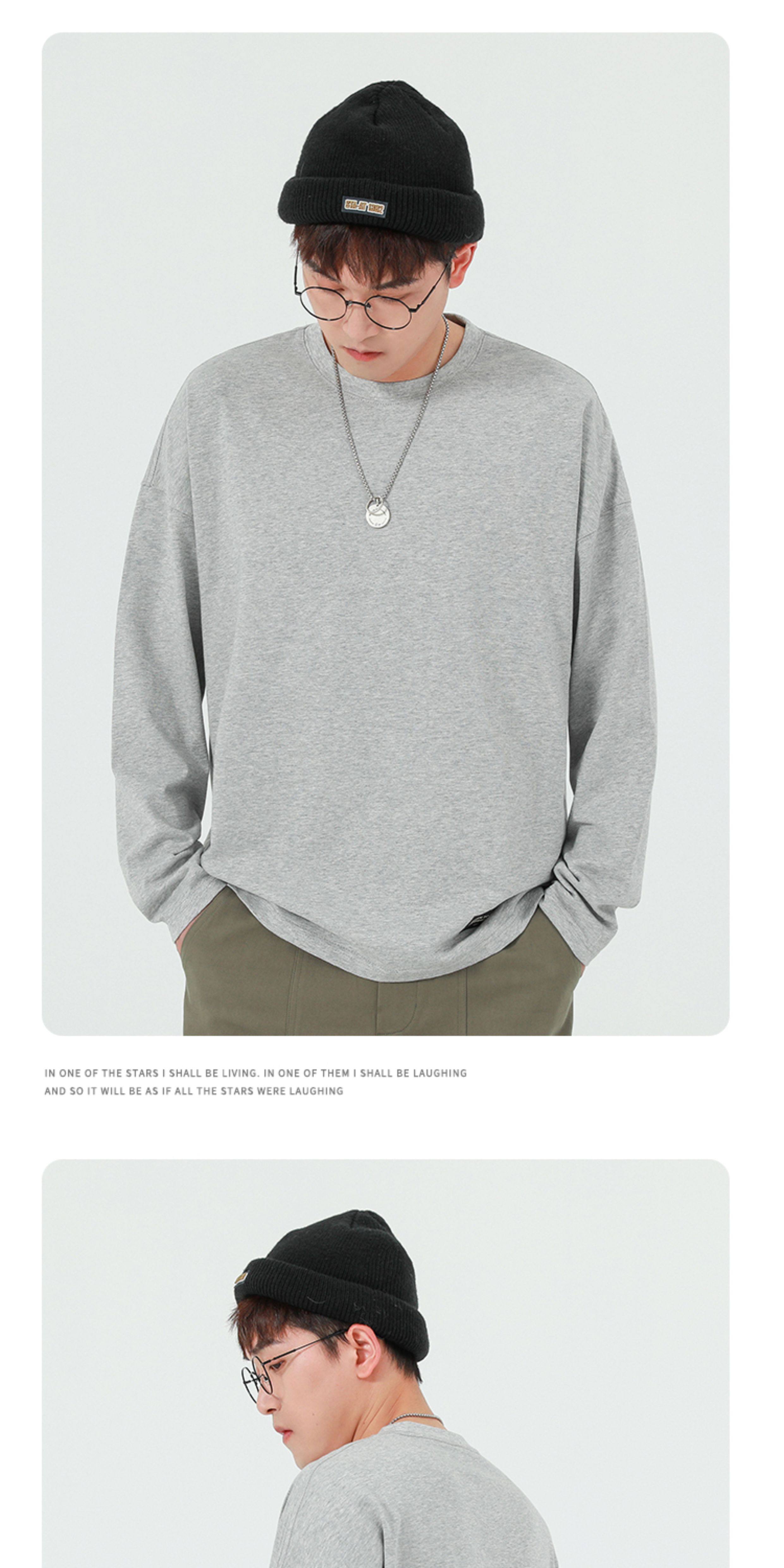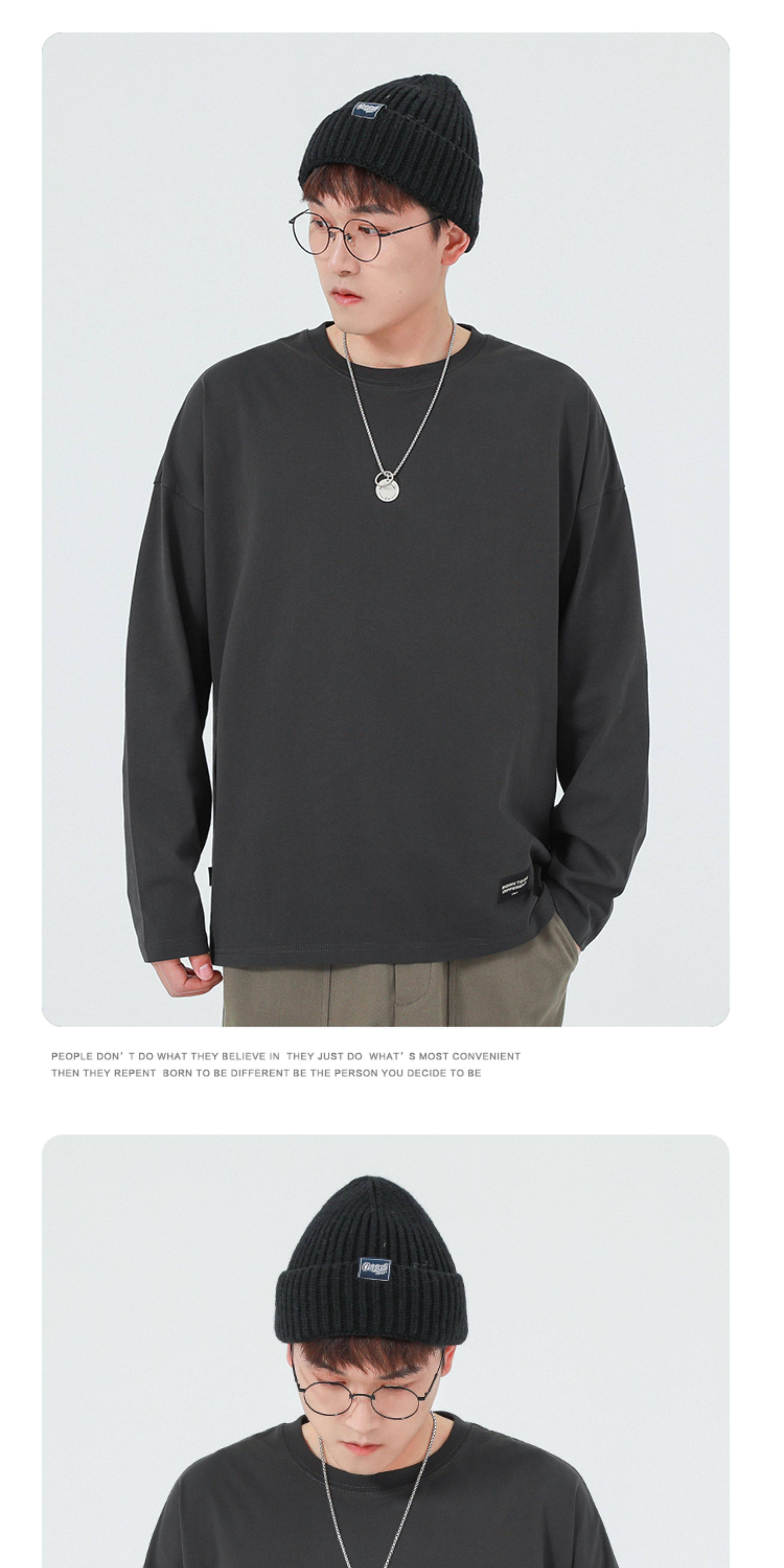 GWIT Осенний хлопковый базовый лонгслив с круглым воротником, 300 грамм