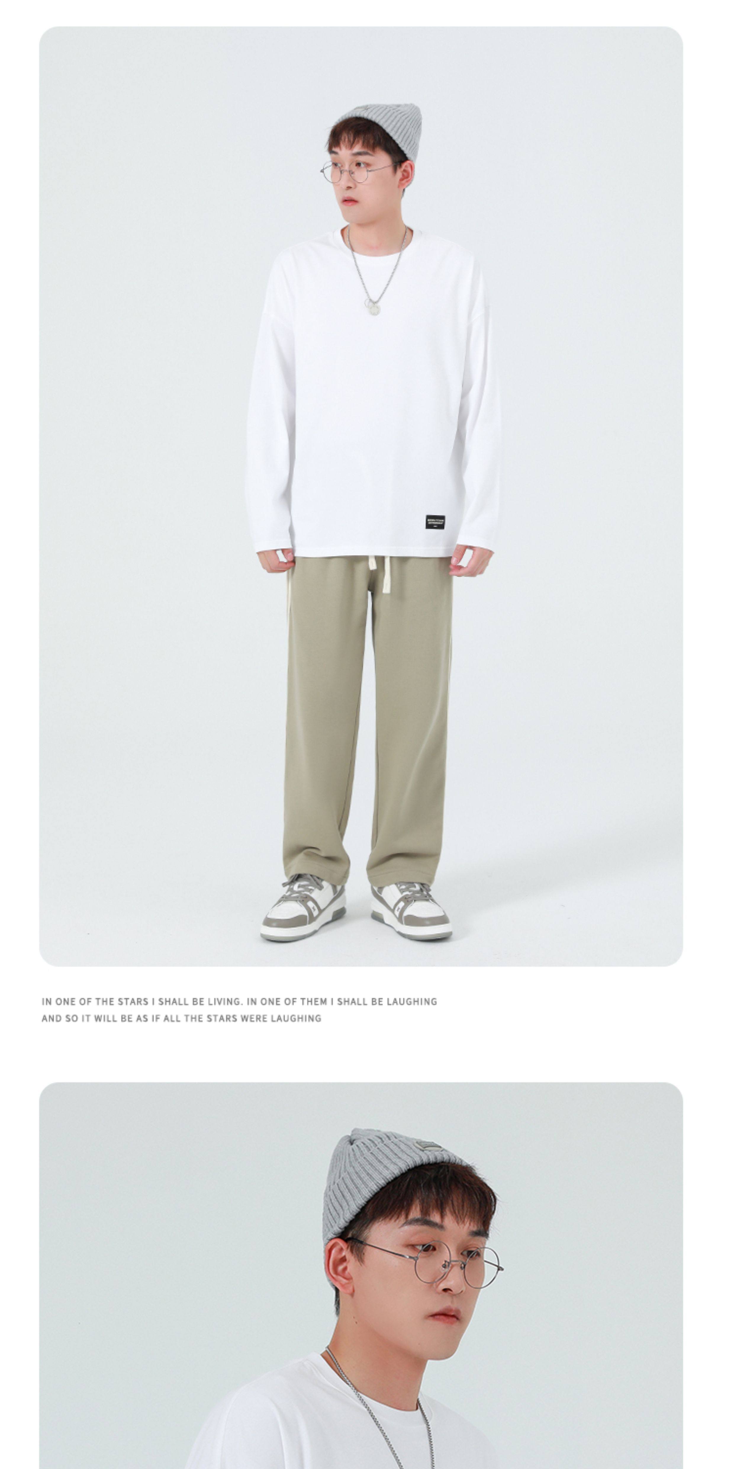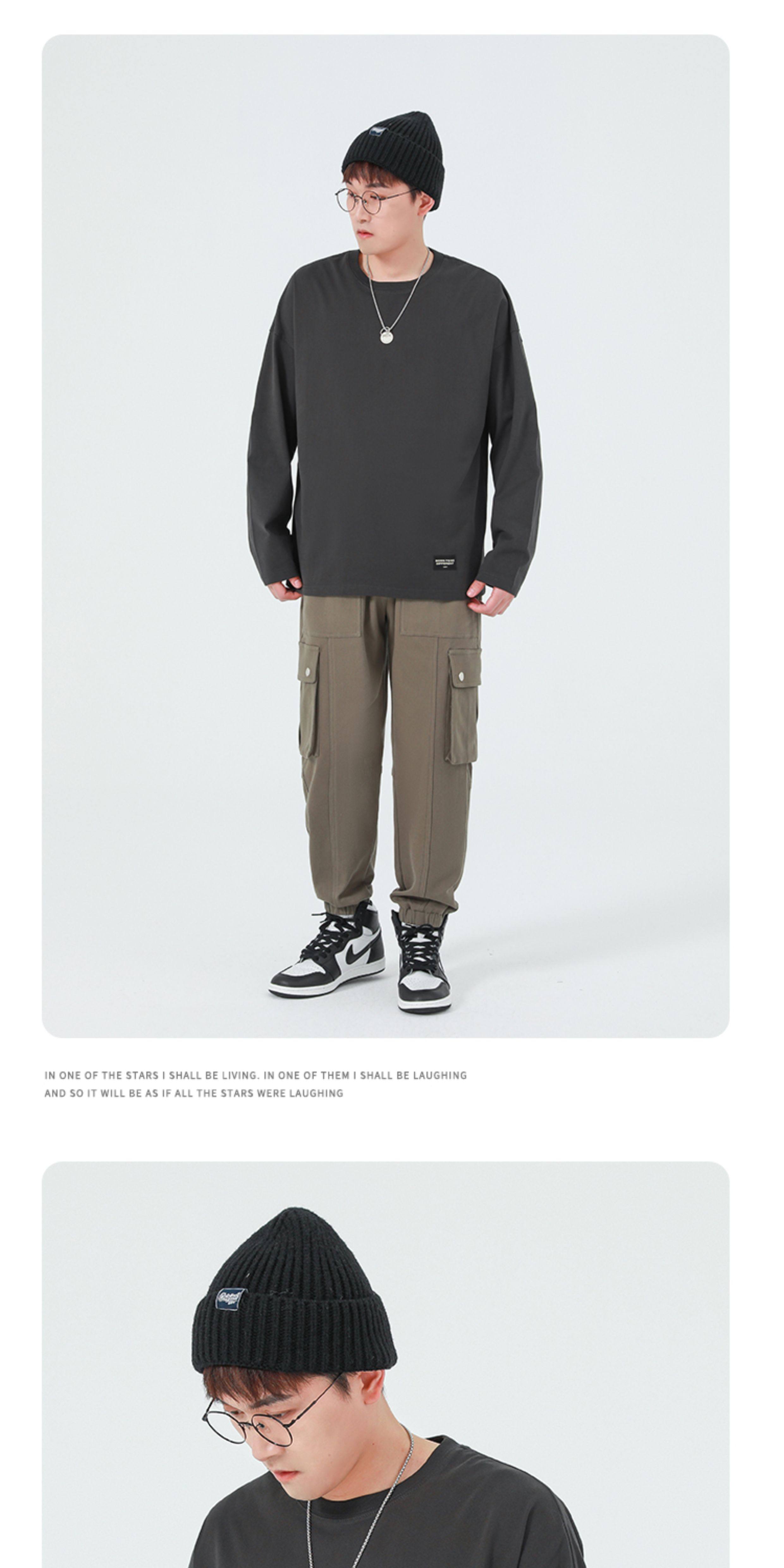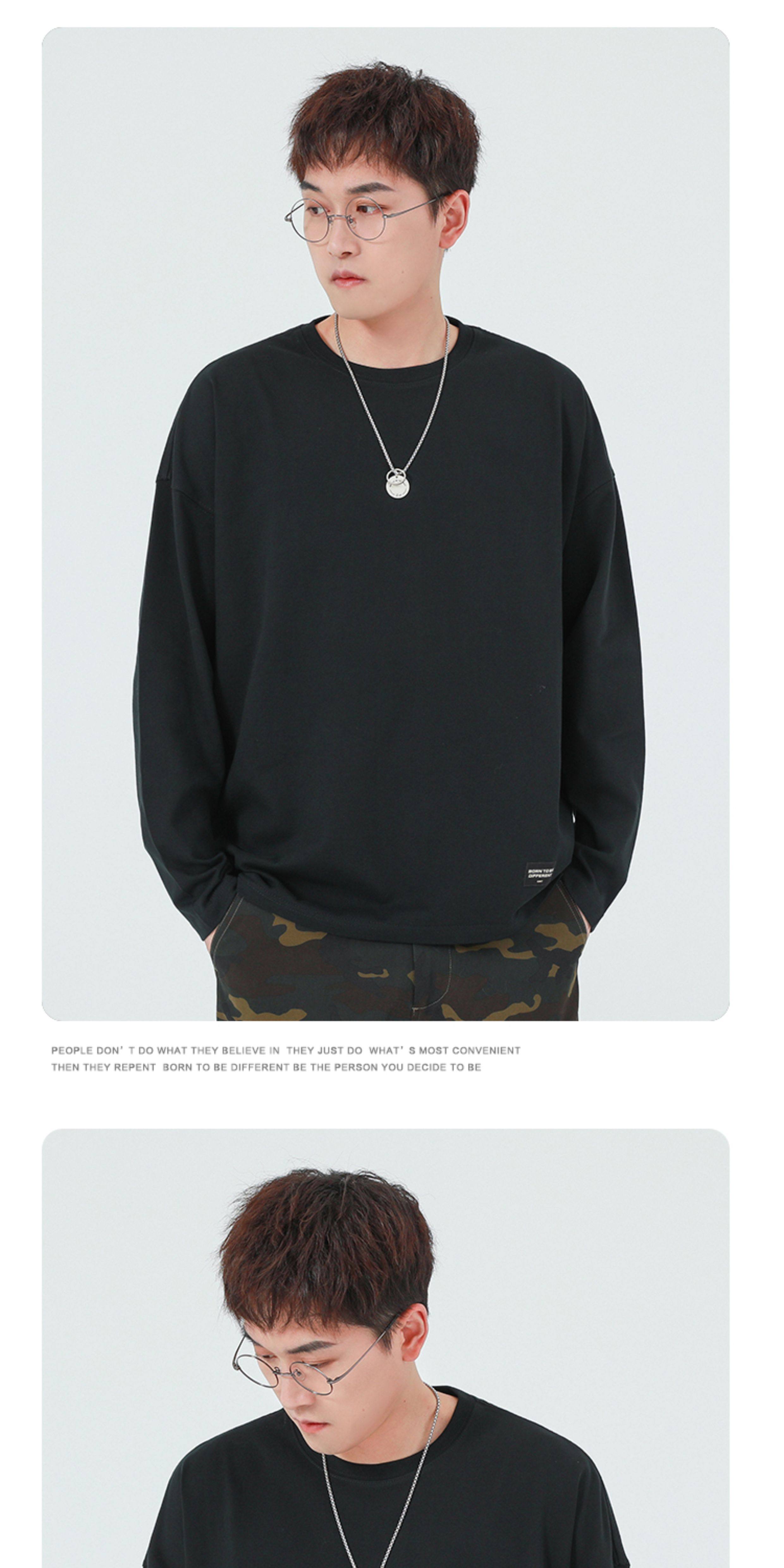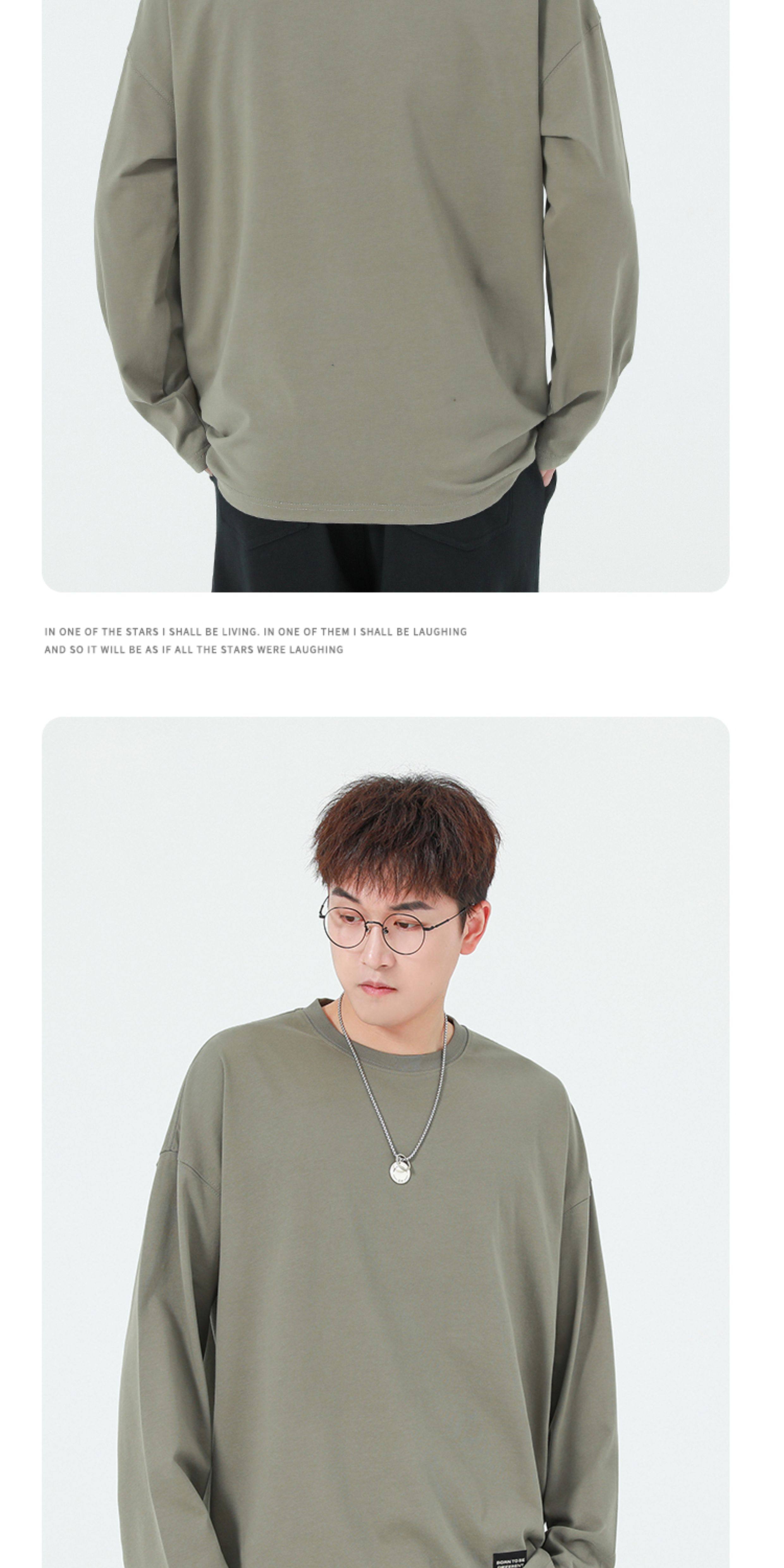 GWIT Осенний хлопковый базовый лонгслив с круглым воротником, 300 грамм