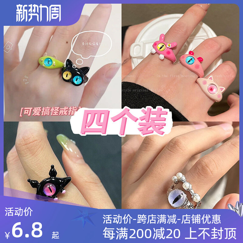 Безразмерный монстр, мультяшное кольцо, милое небольшое дизайнерское ювелирное украшение, большие глаза, для влюбленных, кот