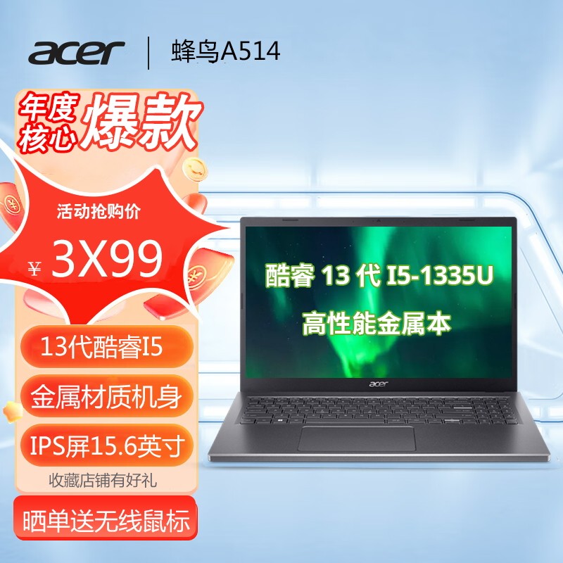Acer, легкий и тонкий металлический портативный ноутбук для школьников, 2023, intel core i5, 15.6 дюймов