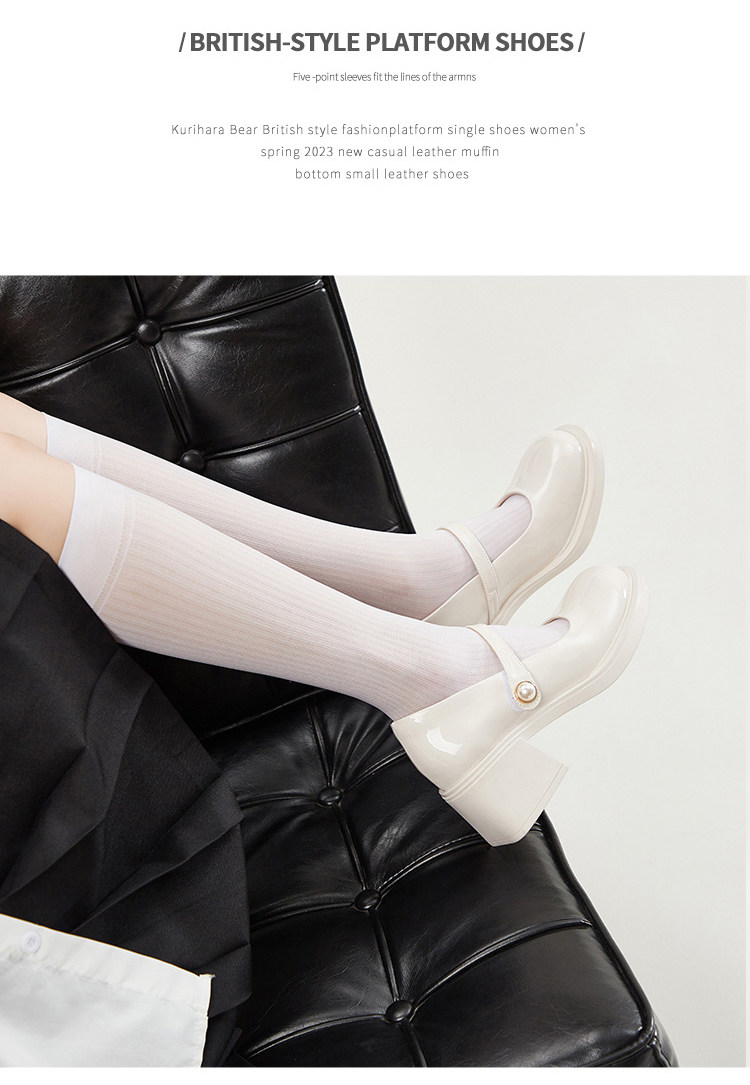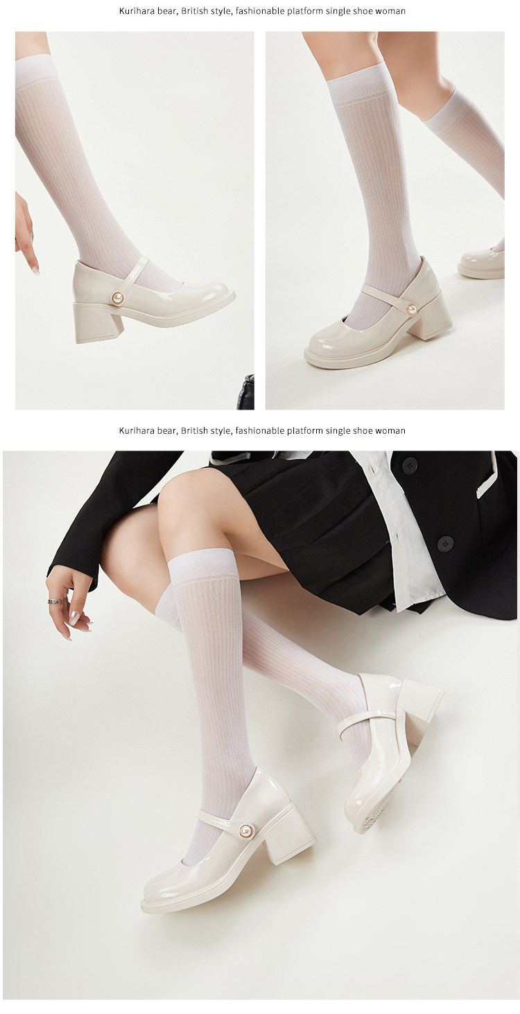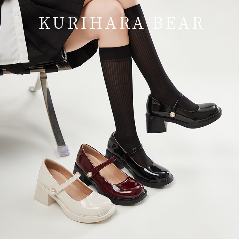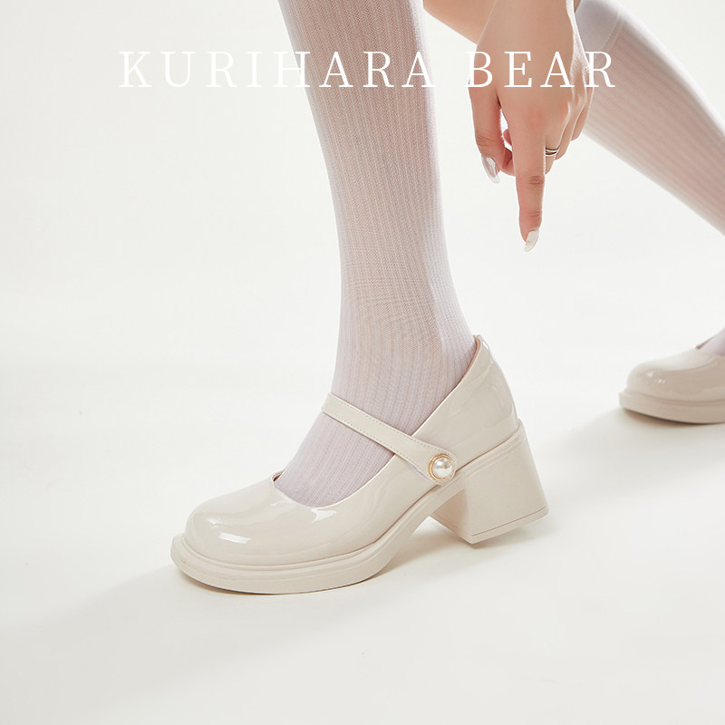 栗原熊 Туфли Мэри Джейн. Женские весенне-осенние новинки 2025 года в британском стиле, белые маленькие кожаные туфли с неглубоким горлышком, универсальная форменная обувь