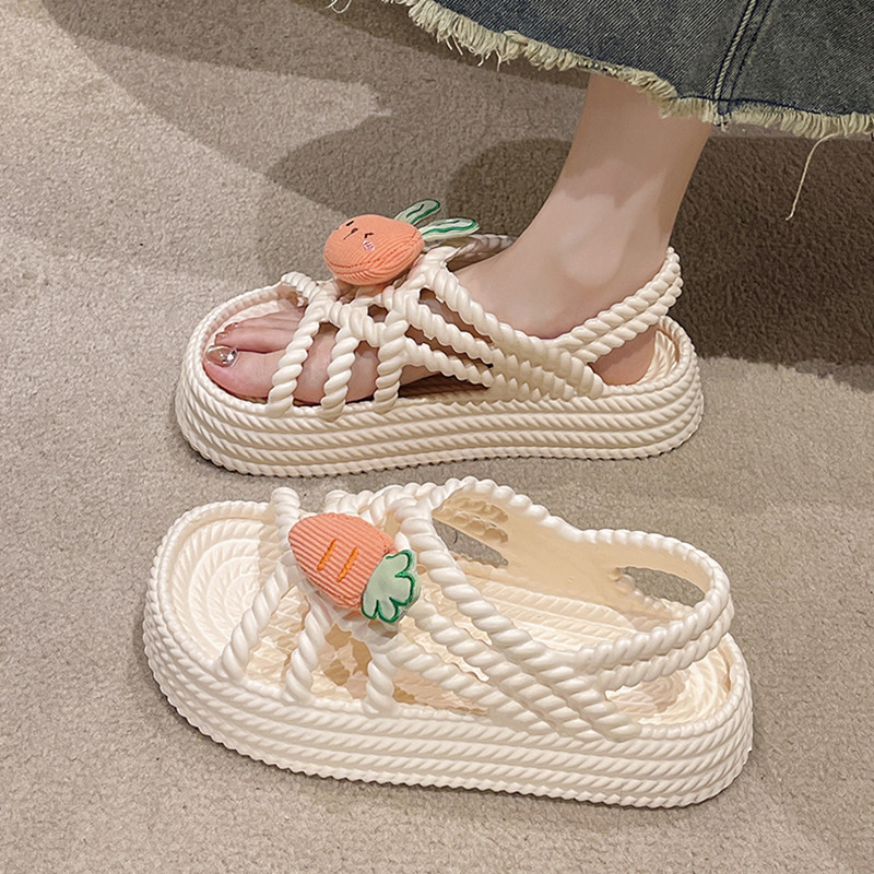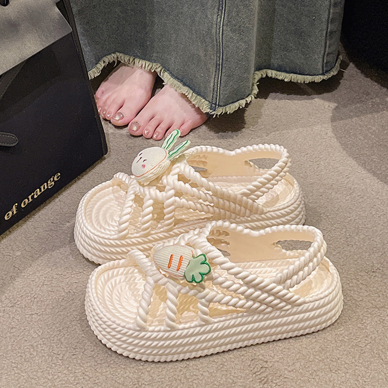 Милый кролик, летние сандалии, универсальная пляжная обувь на платформе, коллекция 2023, пляжный стиль