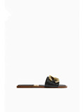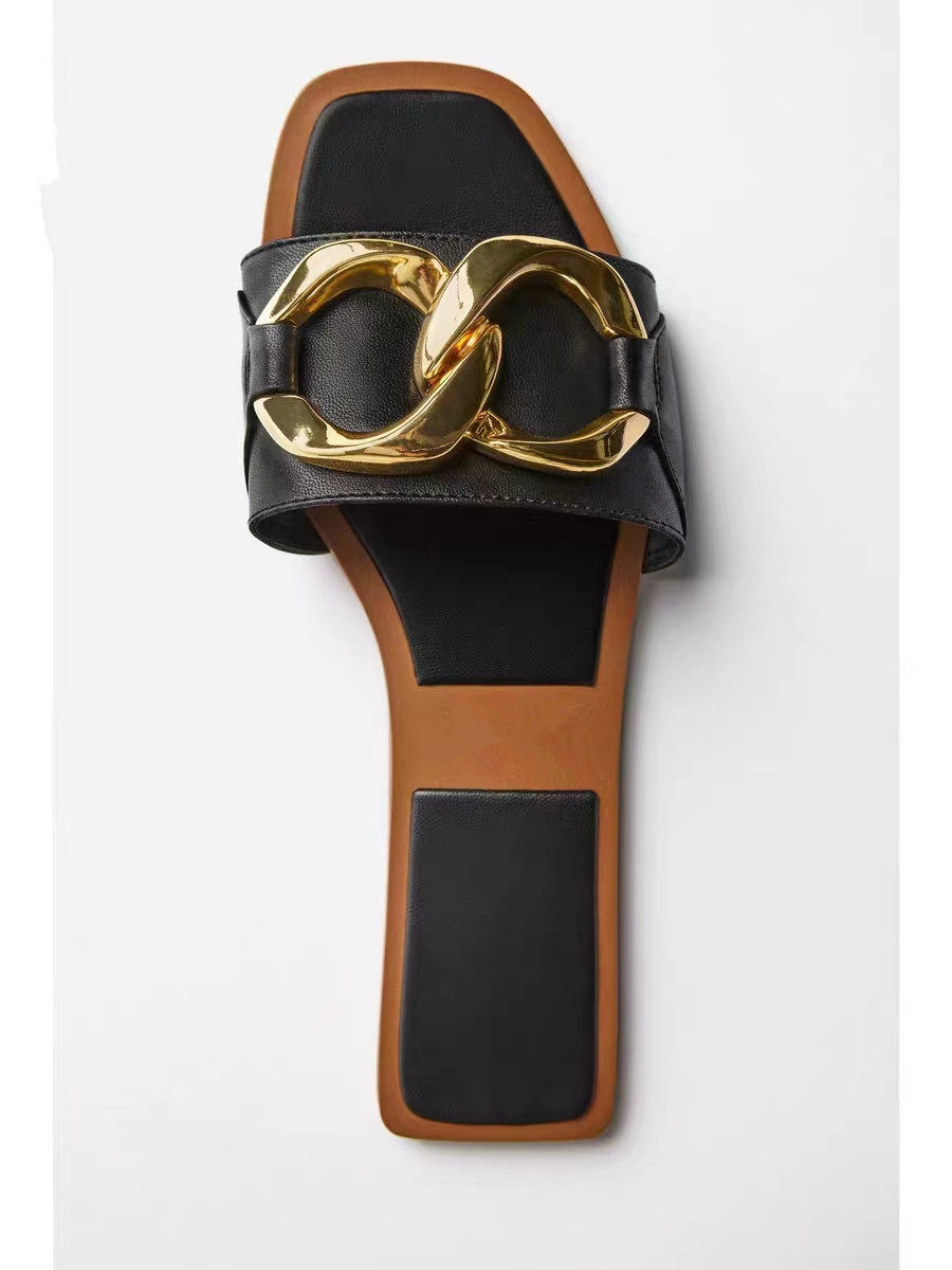 ZAKQ/Новая летняя женская обувь, черные повседневные универсальные сандалии на плоской подошве с декоративной инкрустацией 2603110 800