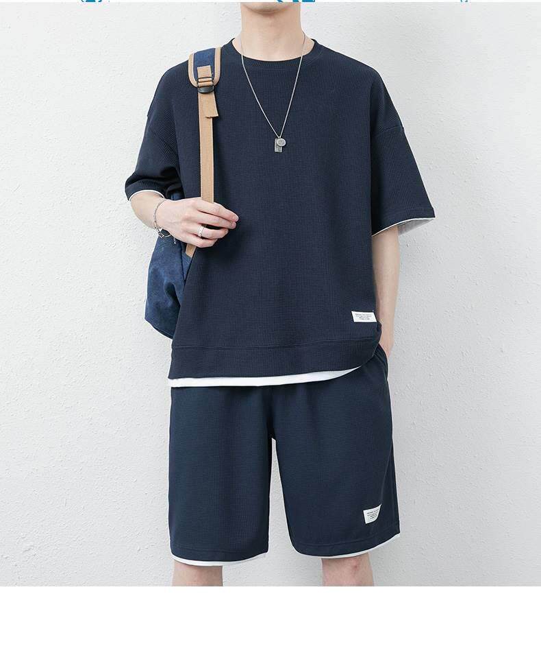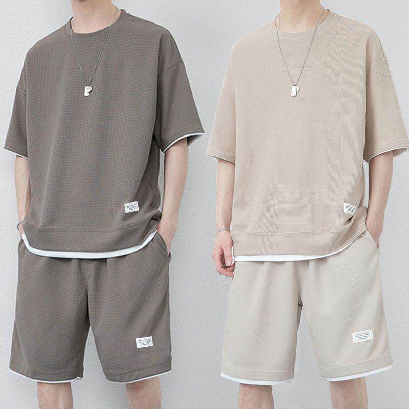 Комплект, летняя шелковая футболка с коротким рукавом, дышащие штаны, спортивный костюм