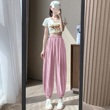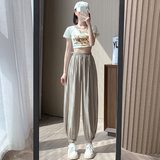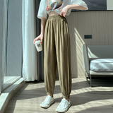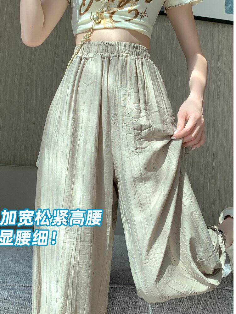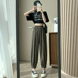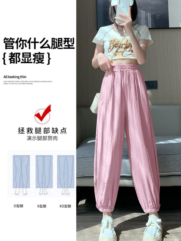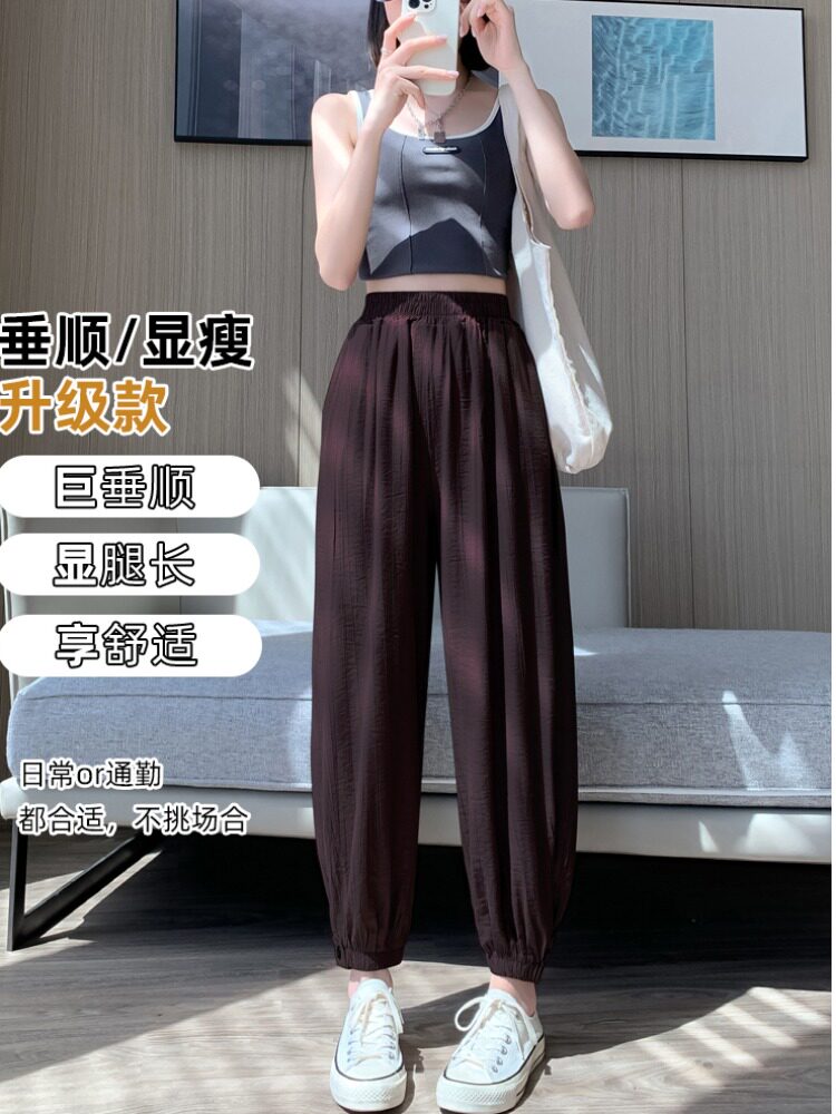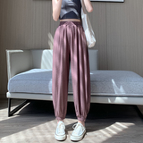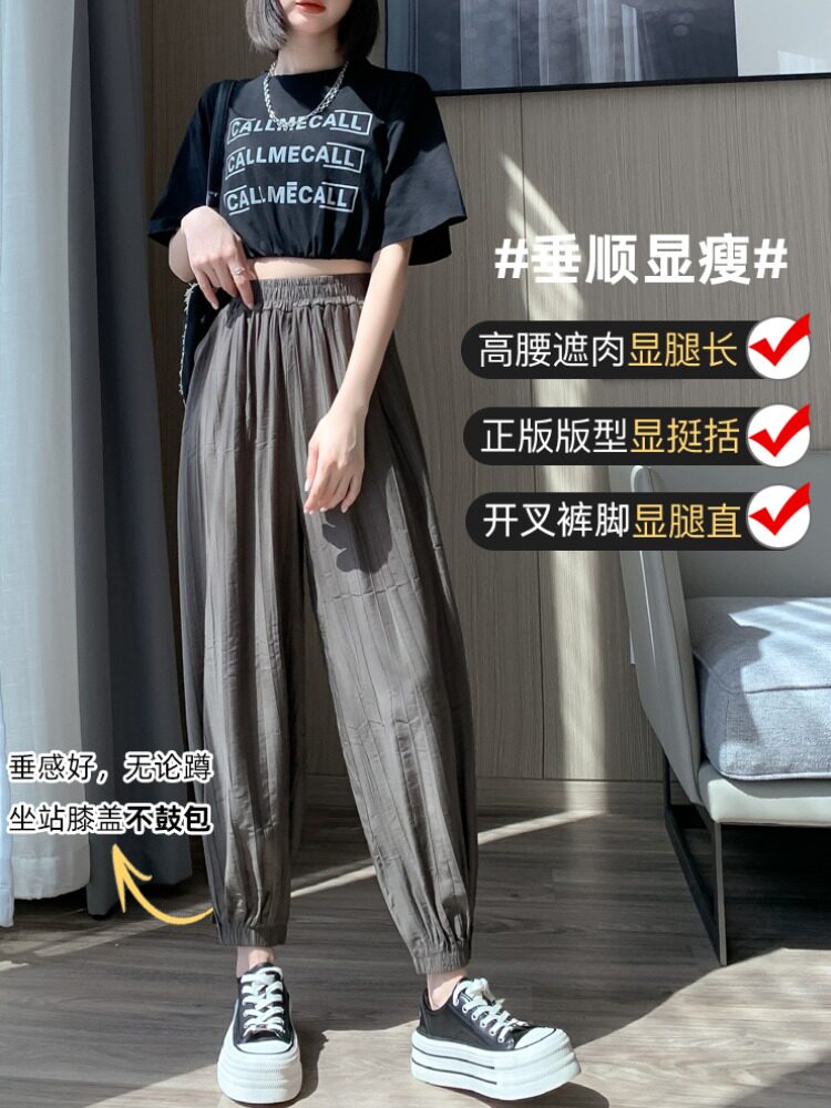 Шелковые тонкие штаны, фонарь, подходят для подростков, высокая талия, свободный прямой крой