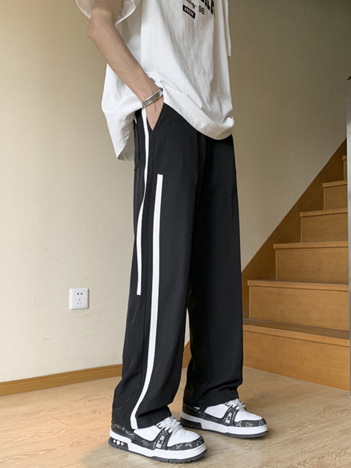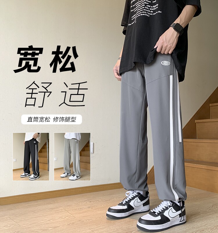 Длинные тонкие шелковые штаны для школьников, оверсайз, свободный прямой крой