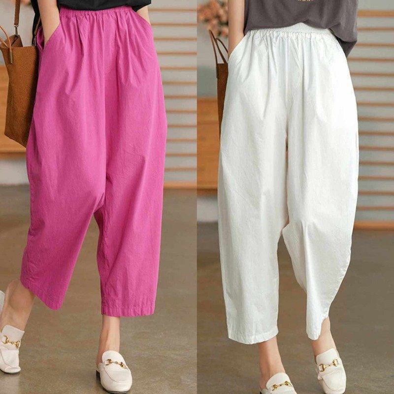 Летние этнические универсальные штаны, ремень, пряжка, из хлопка и льна, этнический стиль, по фигуре, оверсайз