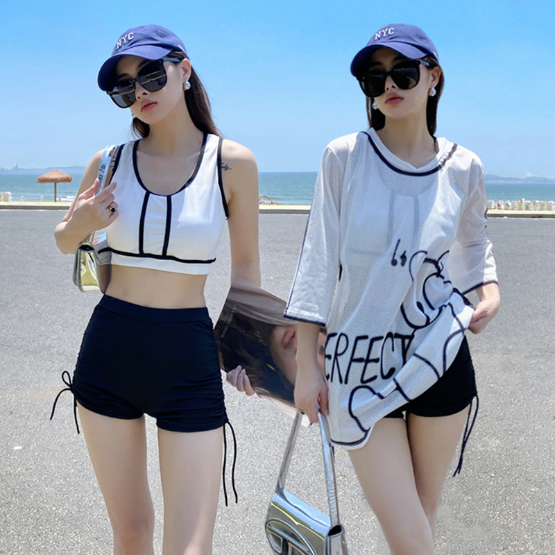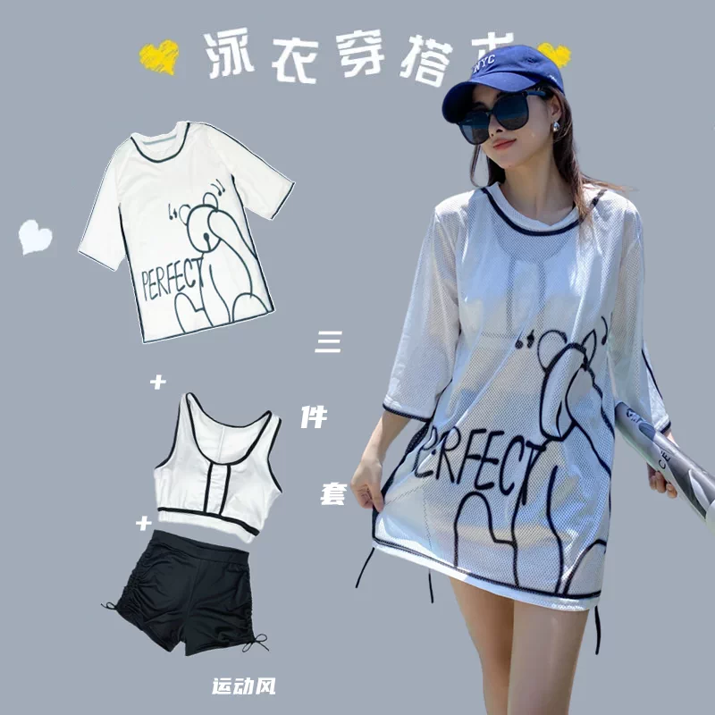 Спортивный купальник, раздельный комплект, брендовый бюстгальтер пуш-ап для школьников и студентов, 3 предмета, свободный крой, в корейском стиле