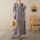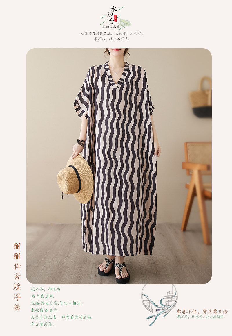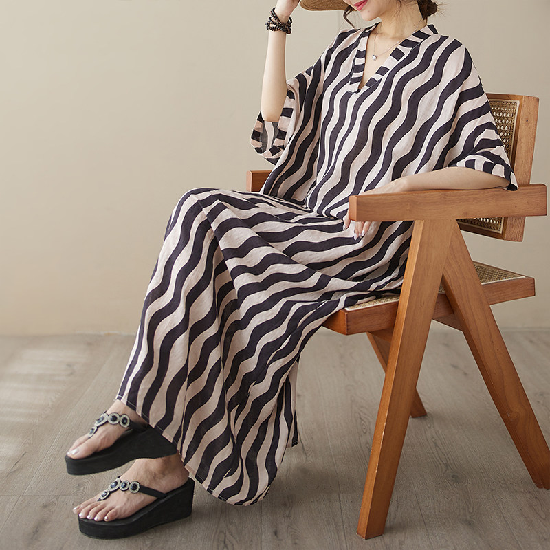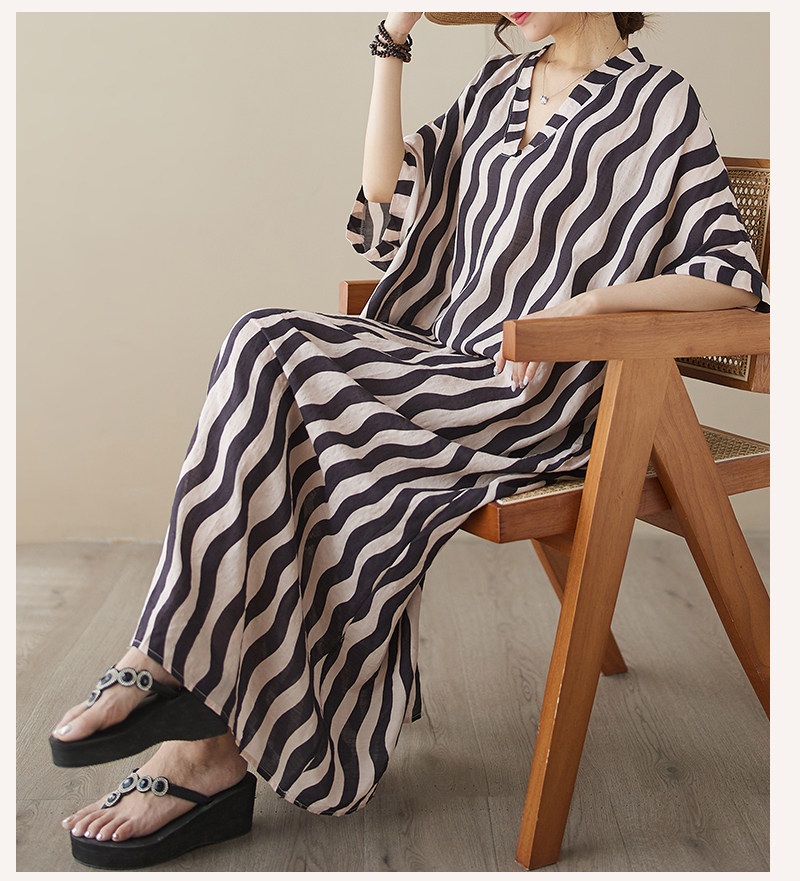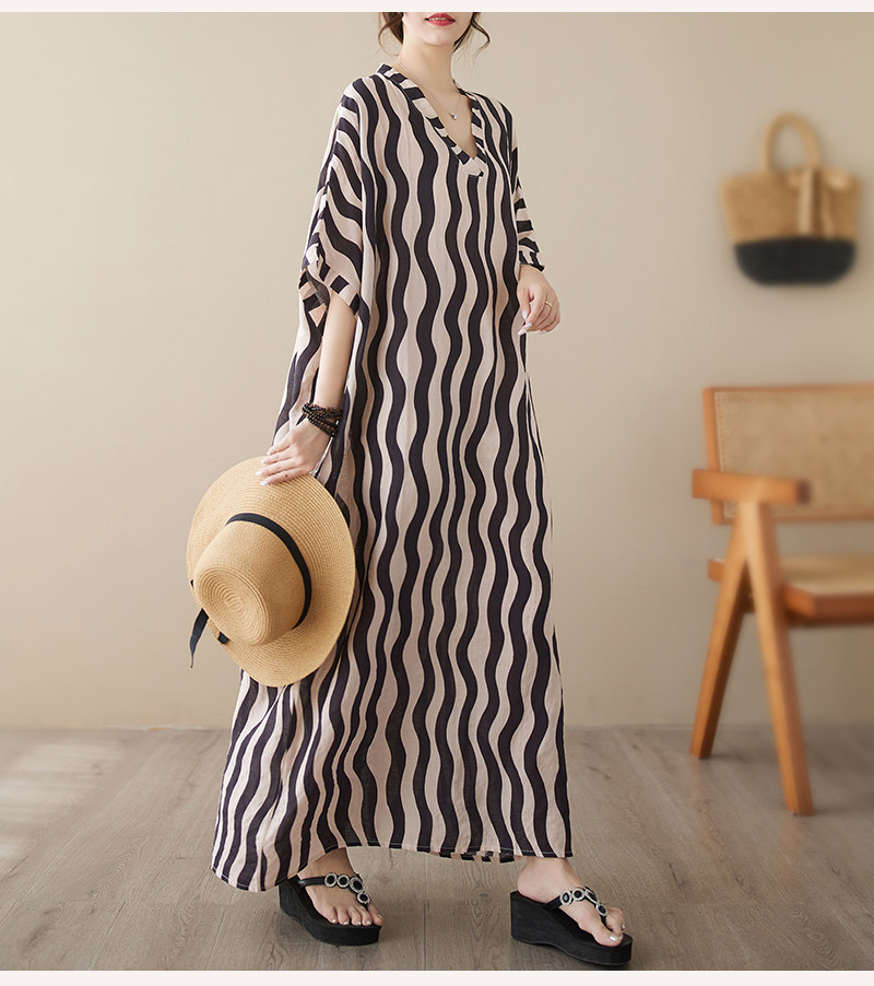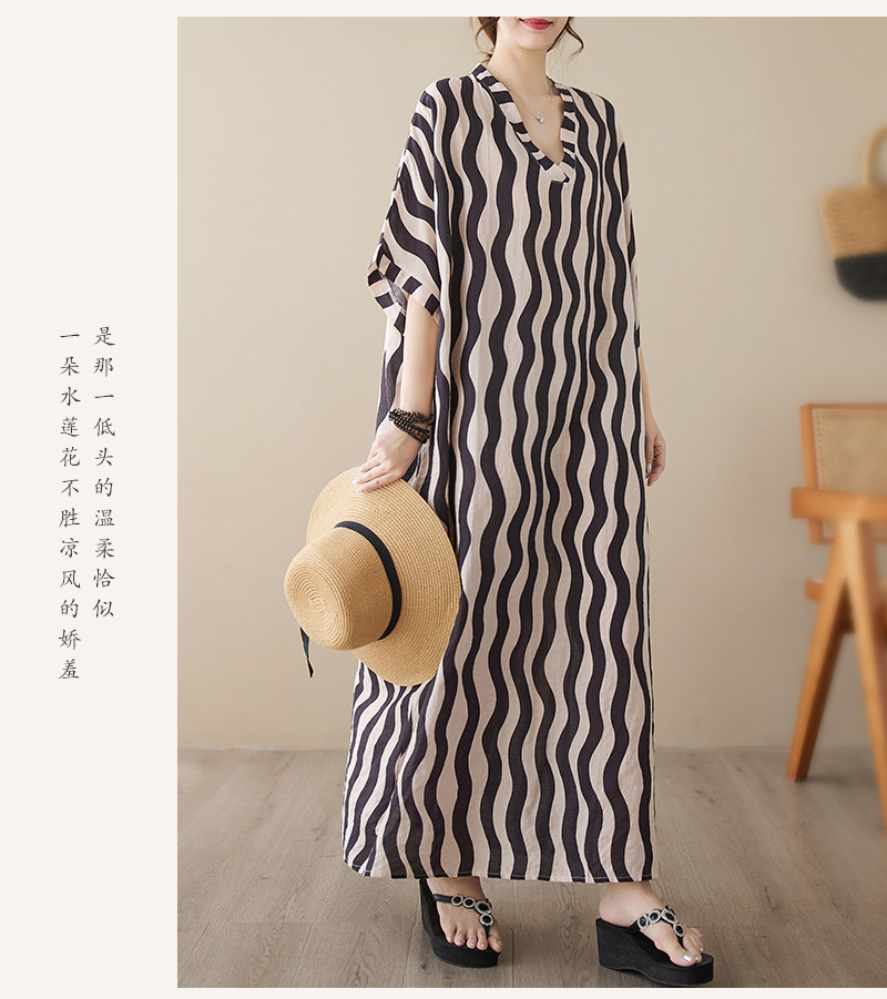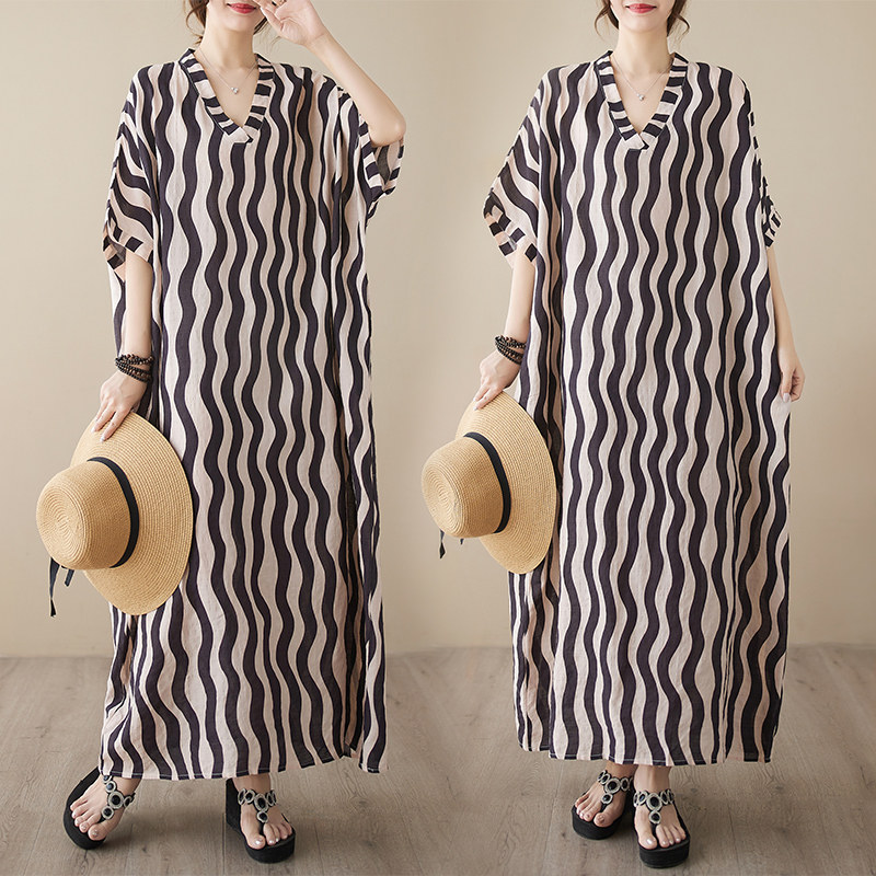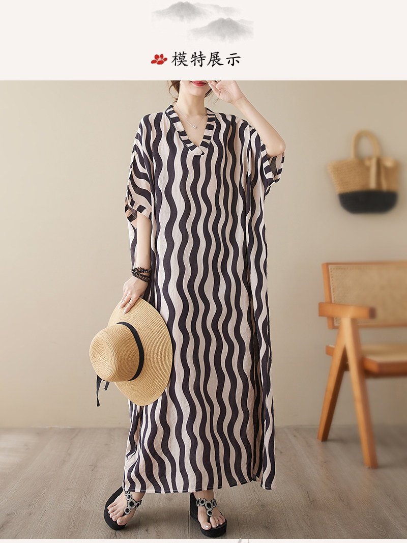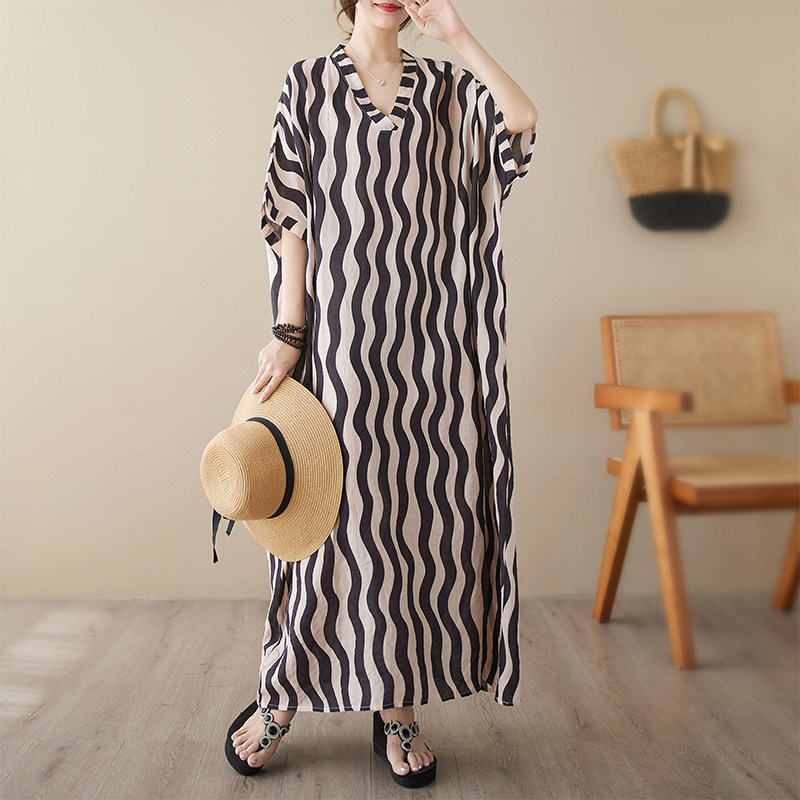 Пляжное платье, длинная юбка для отдыха, большой размер, V-образный вырез, из хлопка и льна