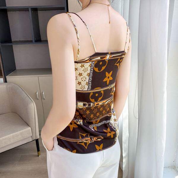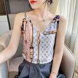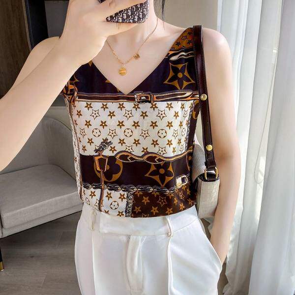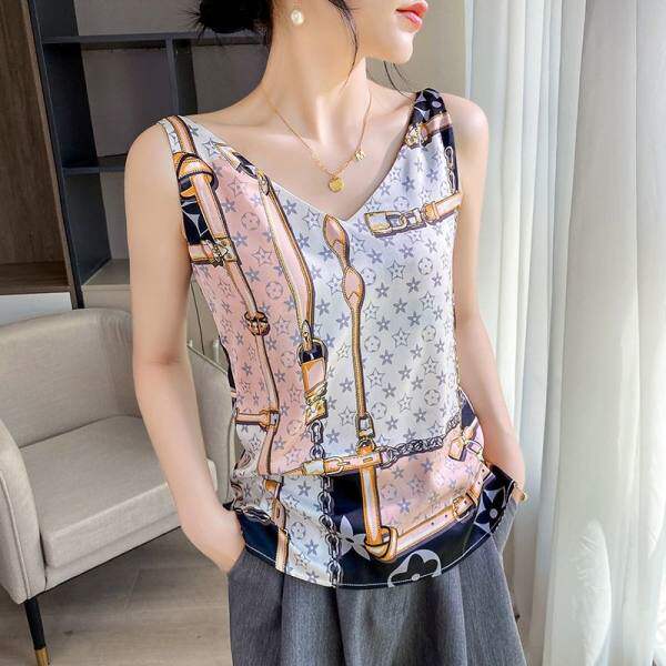 Шелковая майка топ, черный базовый приятный телу шелковый костюм, V-образный вырез