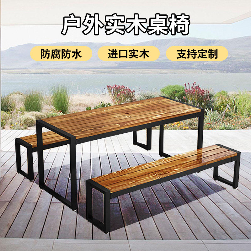Наружные анти -коррупционные деревянные столы и стулья Комбинированные железные балконы на открытом воздухе -воздушный двор терраса. Стол барбекю с твердым деревом.